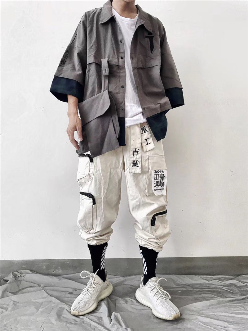 - Removable samurai dropdown back tabs with Japanese kanji design translating to "Heavy Urban Industries"