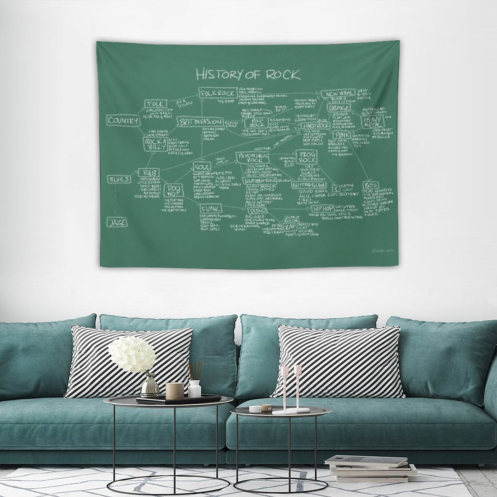 BionZax's History Of Rock Tapestry for Bedroom, College Dorm. History Of Rock Tapestry to decorate your bedroom, college dorm, living room, or kitchen wall, it is the best gift for funny, meme, aesthetic, trendy, simple, fashion, music, abstract, fantasy, modern tapestry for girls, men, boys, teen, women, kids.