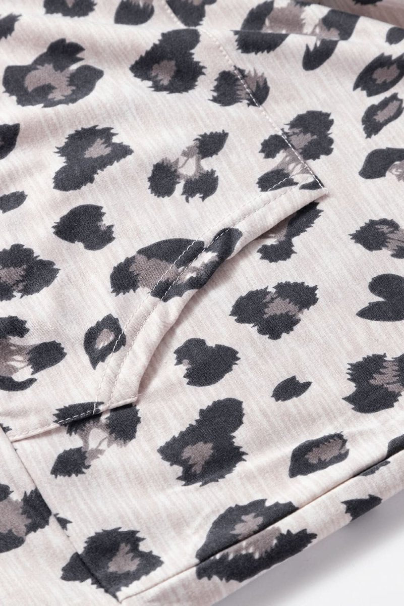 Elevate your lounge time with the Khaki Leopard Print Drawstring Hoodie and Skinny Pants Lounge Set, a fierce and comfortable choice for any casual occasion. This chic ensemble combines style with comfort, perfect for relaxing at home or casual outings.