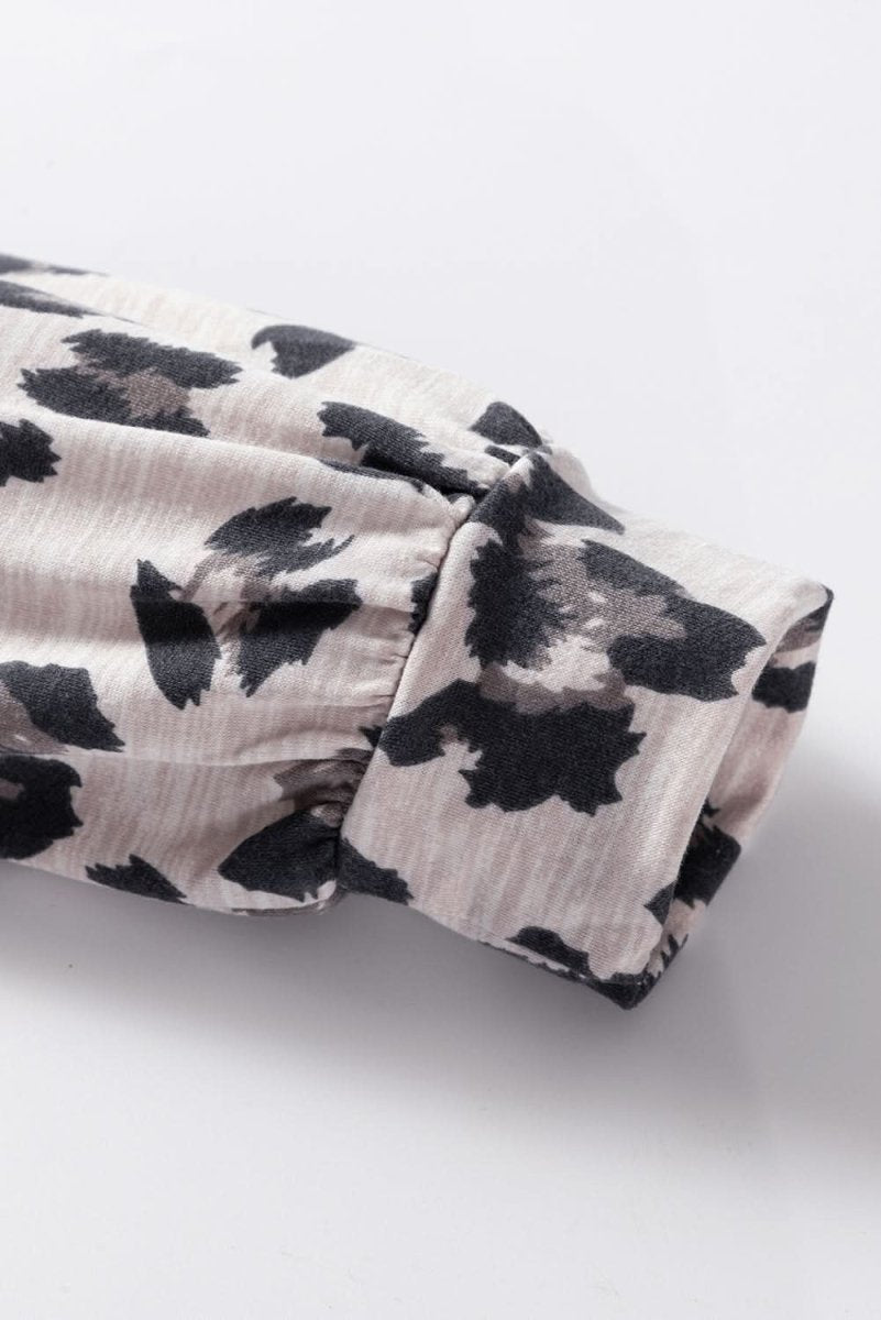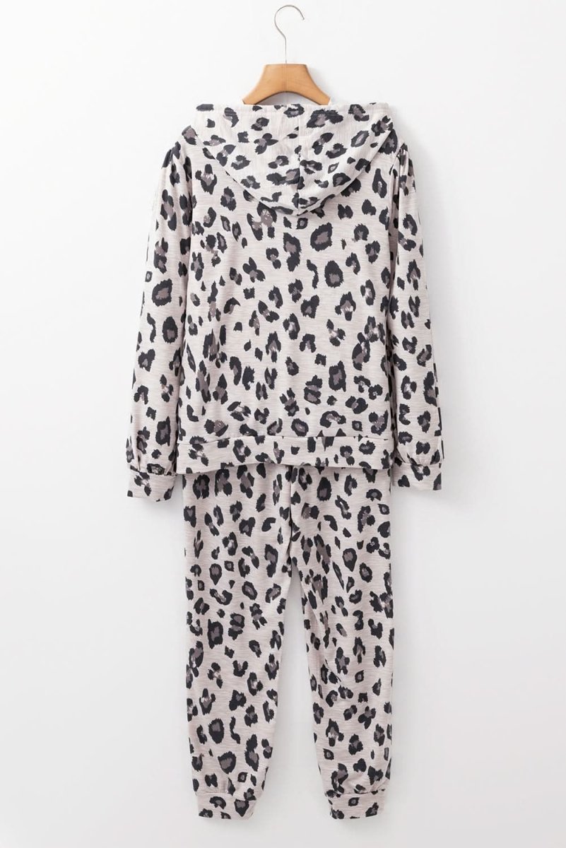 Khaki Leopard Print Drawstring Hoodie and Skinny Pants Lounge Set