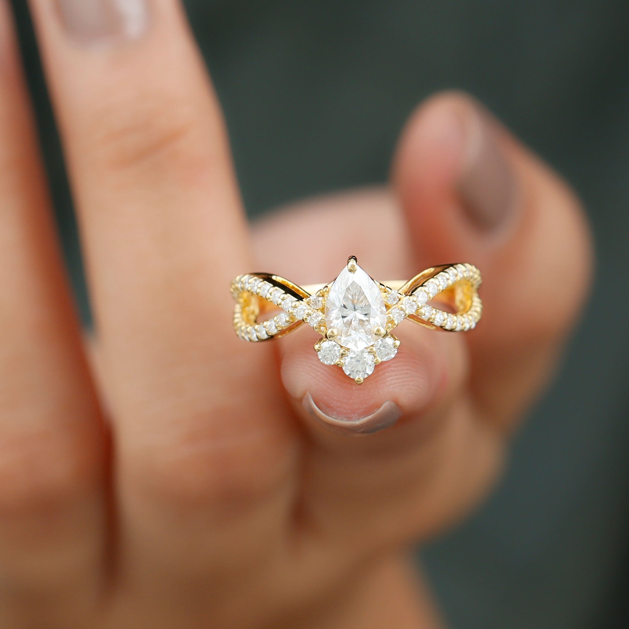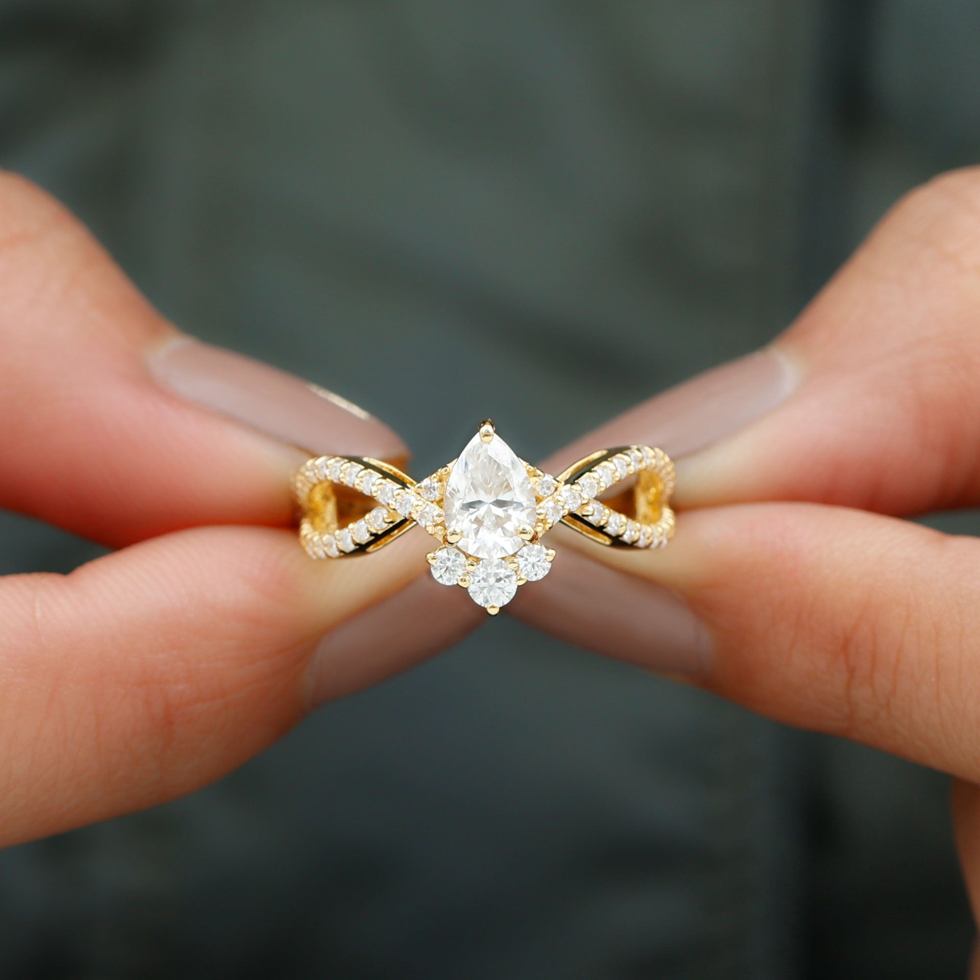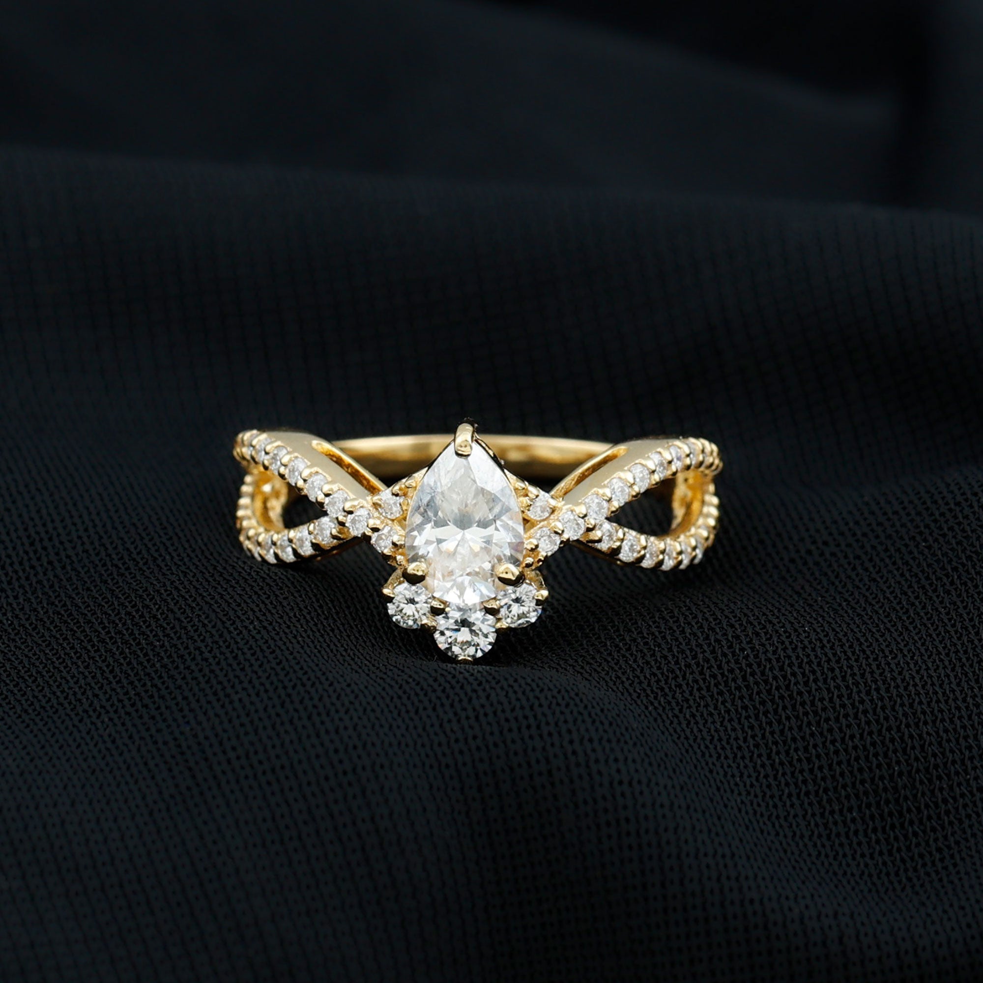 Make your proposal an epic effect with this Lab Grown Diamond Ring which is a mesmerizing symbol of love and devotion that beautifully intertwines elegance and innovation. This breathtaking ring features 5X7 MM Pear Shaped Lab Grown Diamond in Prong Setting, that sits in the center elegantly. With a sparkling classic and bold statements, this Diamond Engagement Ring has an enchanting crossover design that embodies seamless connection and unity between two souls. The band is adorned with sparkling Diamond Accents that enhance the overall brilliance, ensuring that the Pear Shaped Diamond Ring captures the light from every angle.