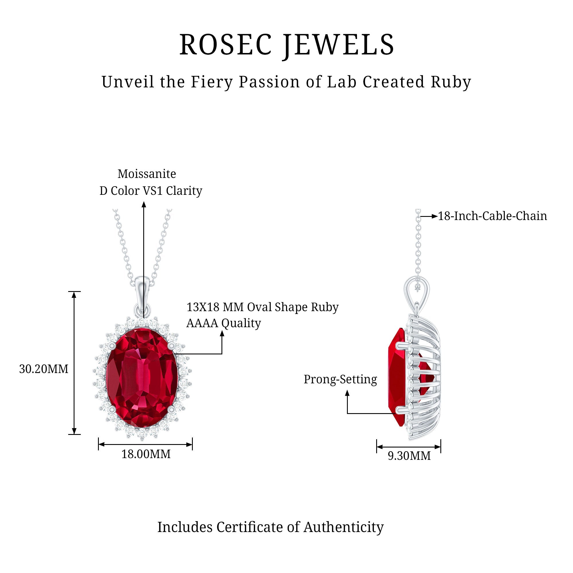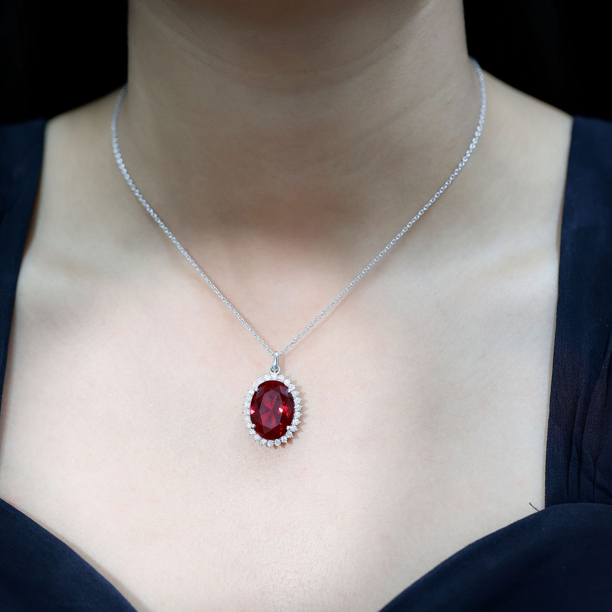 Lab Grown Ruby 13X18 mm Cocktail Necklace With Silver Chain