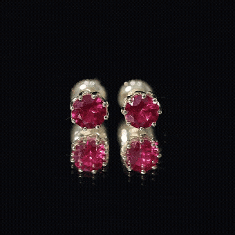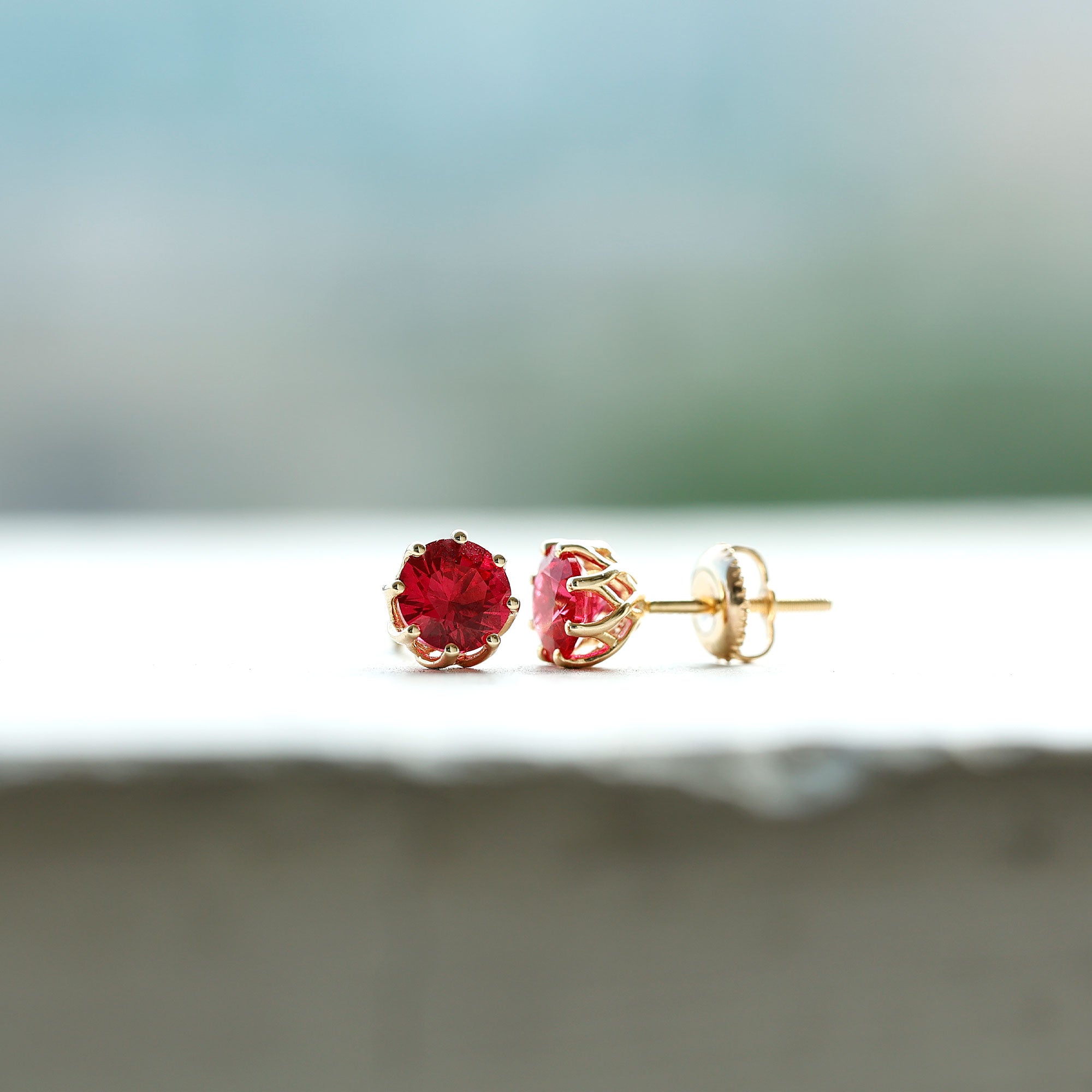 Lab Grown Ruby Stud Earrings in Gold Plated Silver ‐ AAAA / 14K Yellow Gold Plated Silver