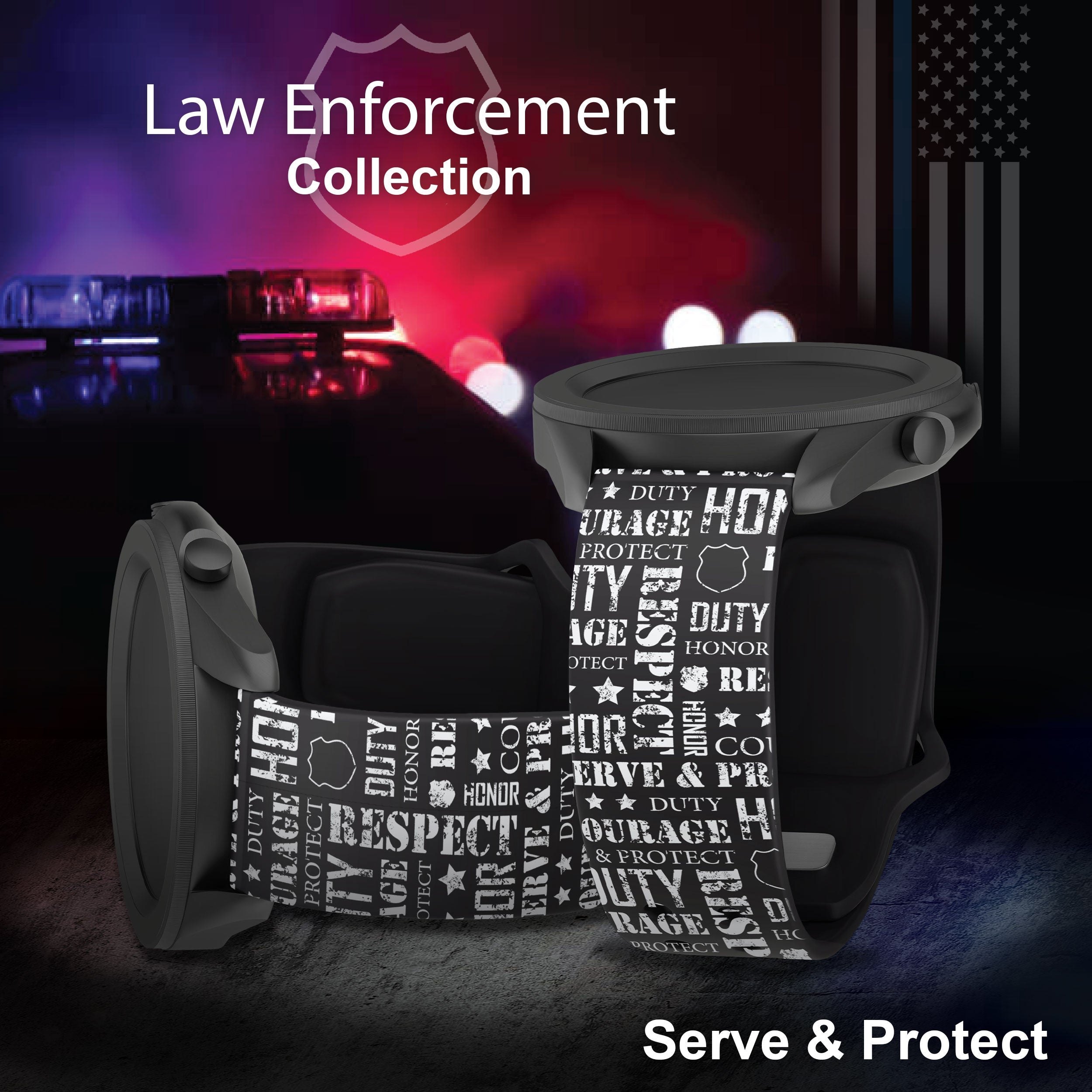 Law Enforcement HD Watchband for Samsung, Garmin, Fossil, and More for Samsung, Garmin, Fossil, and More ‐ Serve & Protect / 20mm / Long