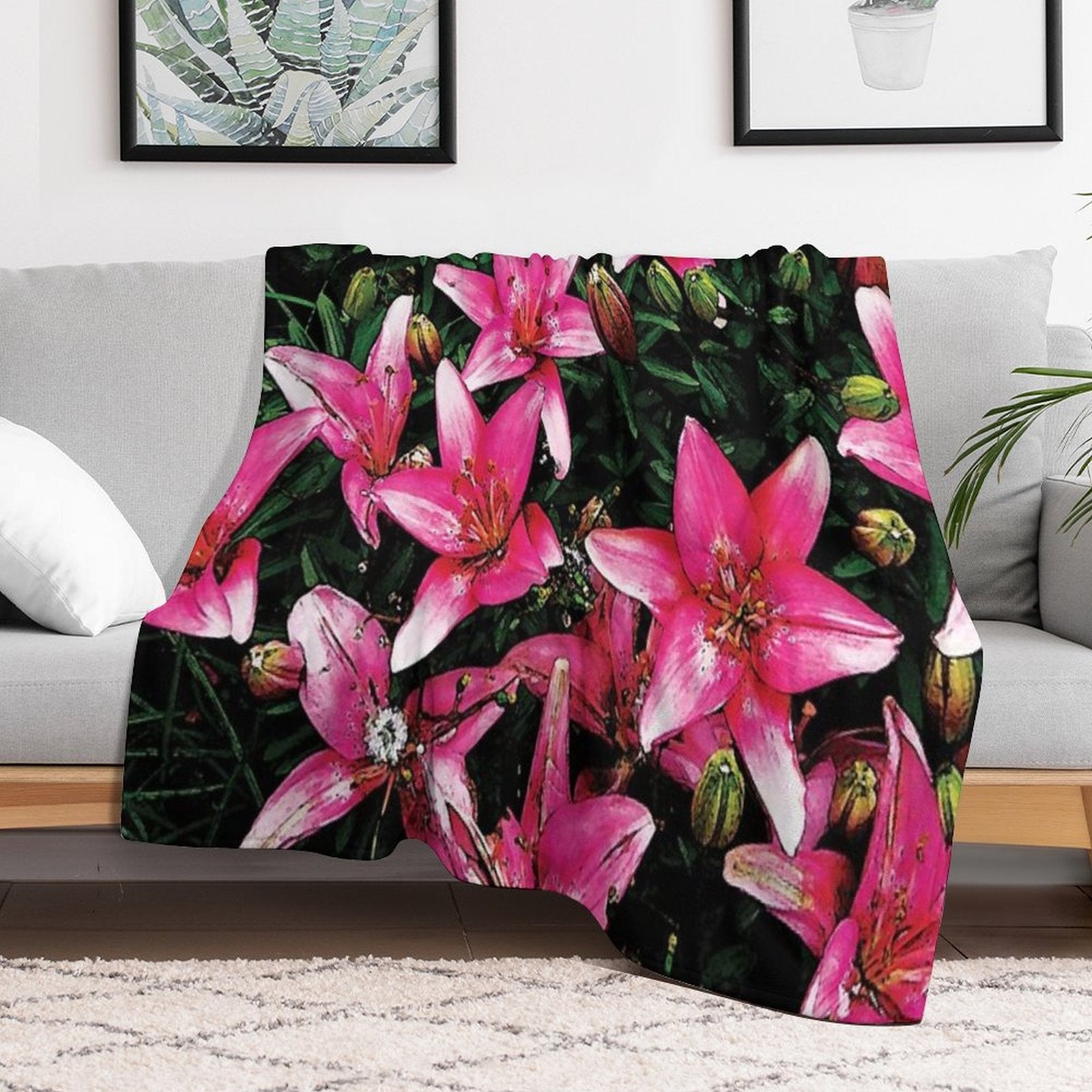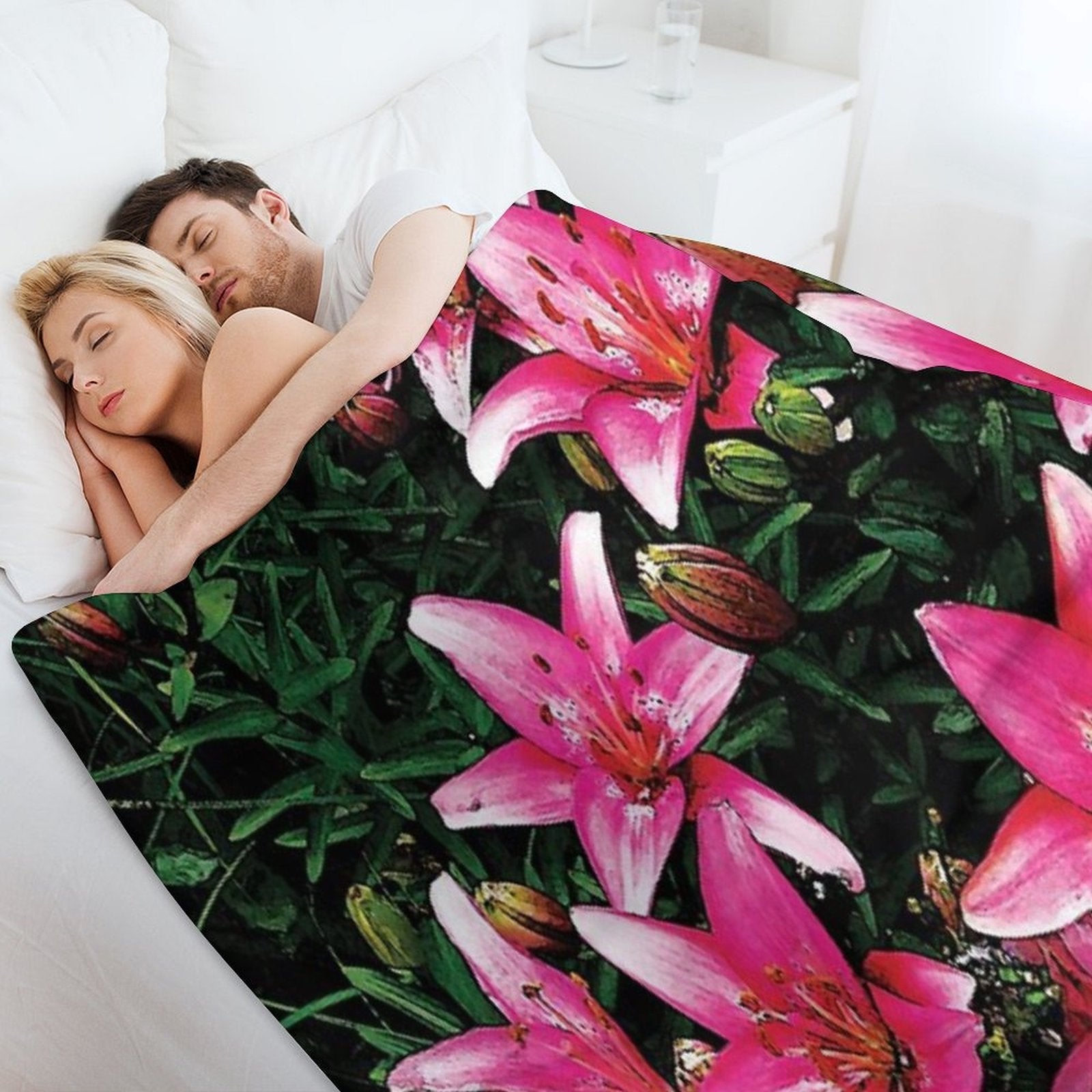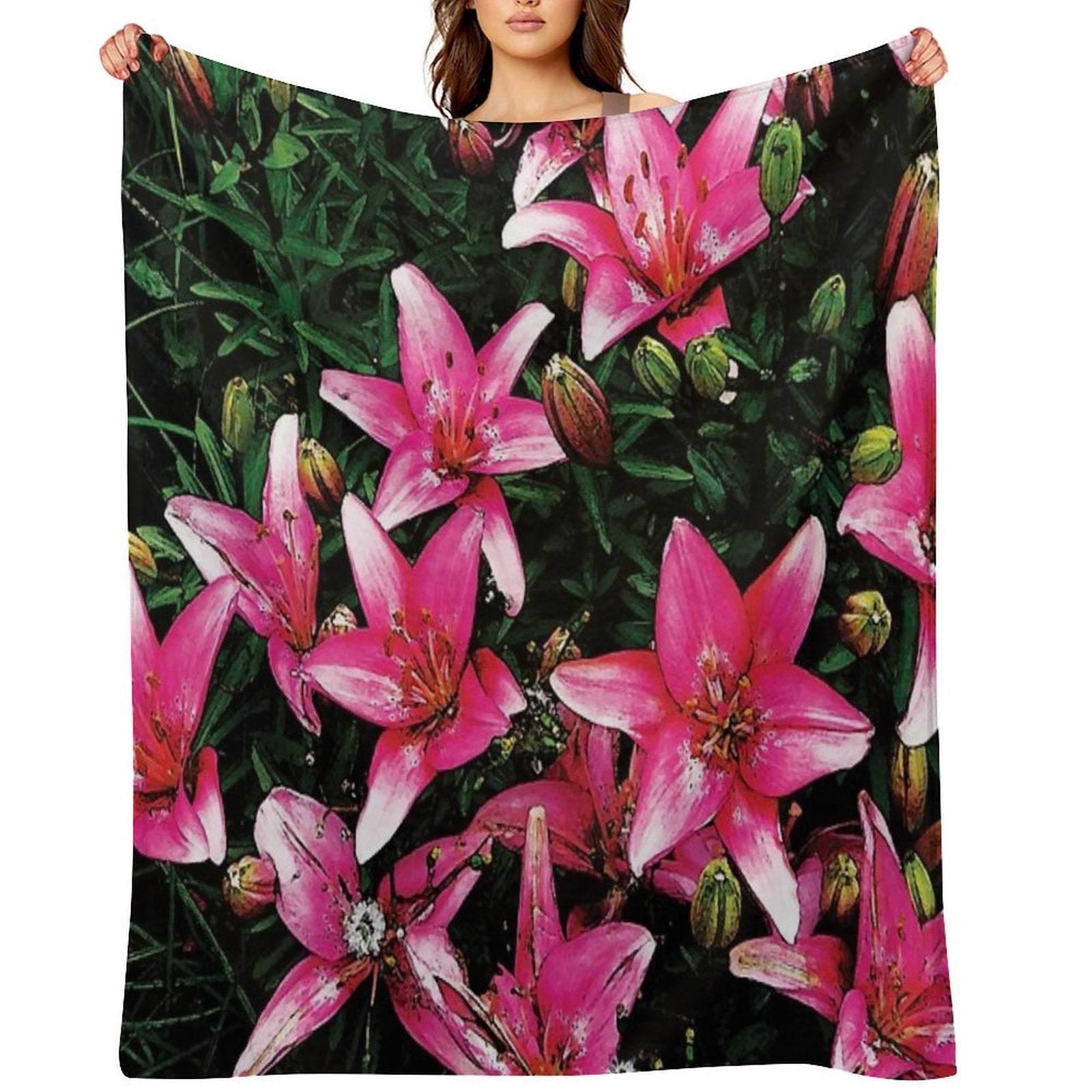 Lovely Pink Lilies in Full Bloom Water Color Throw Blanket ‐ Lovely Pink Lilies in Full Bloom Water Color / 60"×80"