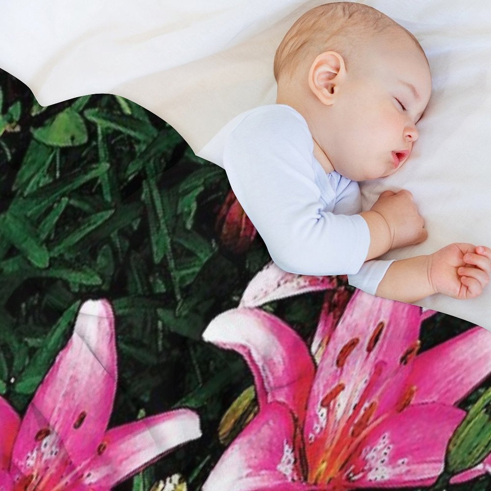 Lovely Pink Lilies in Full Bloom Water Color Throw Blanket ‐ Lovely Pink Lilies in Full Bloom Water Color / 40"×50"