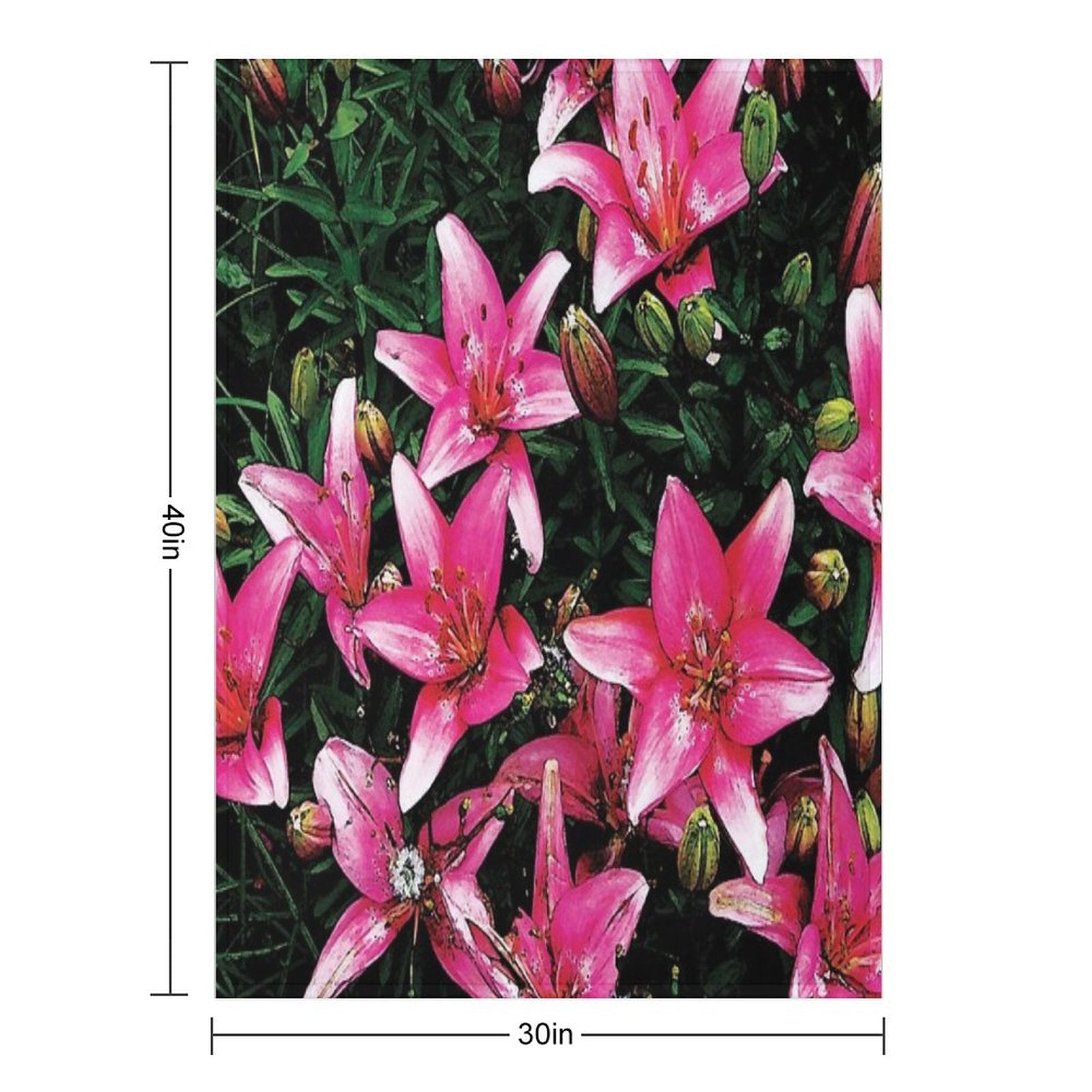 Lovely Pink Lilies in Full Bloom Water Color Throw Blanket ‐ Lovely Pink Lilies in Full Bloom Water Color / 30"×40"