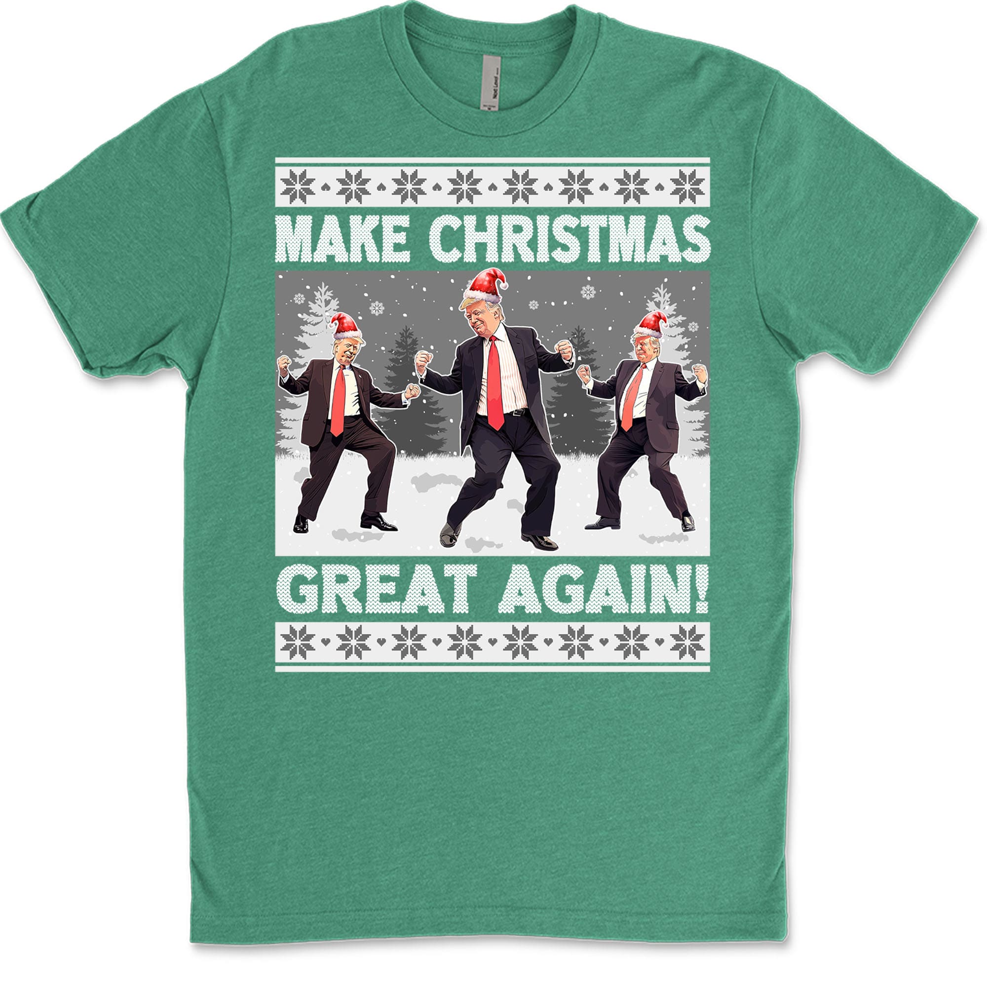 Make Christmas Great Again, Funny Trump Dancing Ugly Sweater, Trump 2024 Sweatshirt, Trump Supporters Christmas Sweatshirt T1383 - GOP ‐ Premium Tee / P Green / M