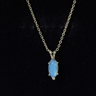 Marquise Cut Solitaire Ethiopian Opal Birthstone Necklace with Chain
