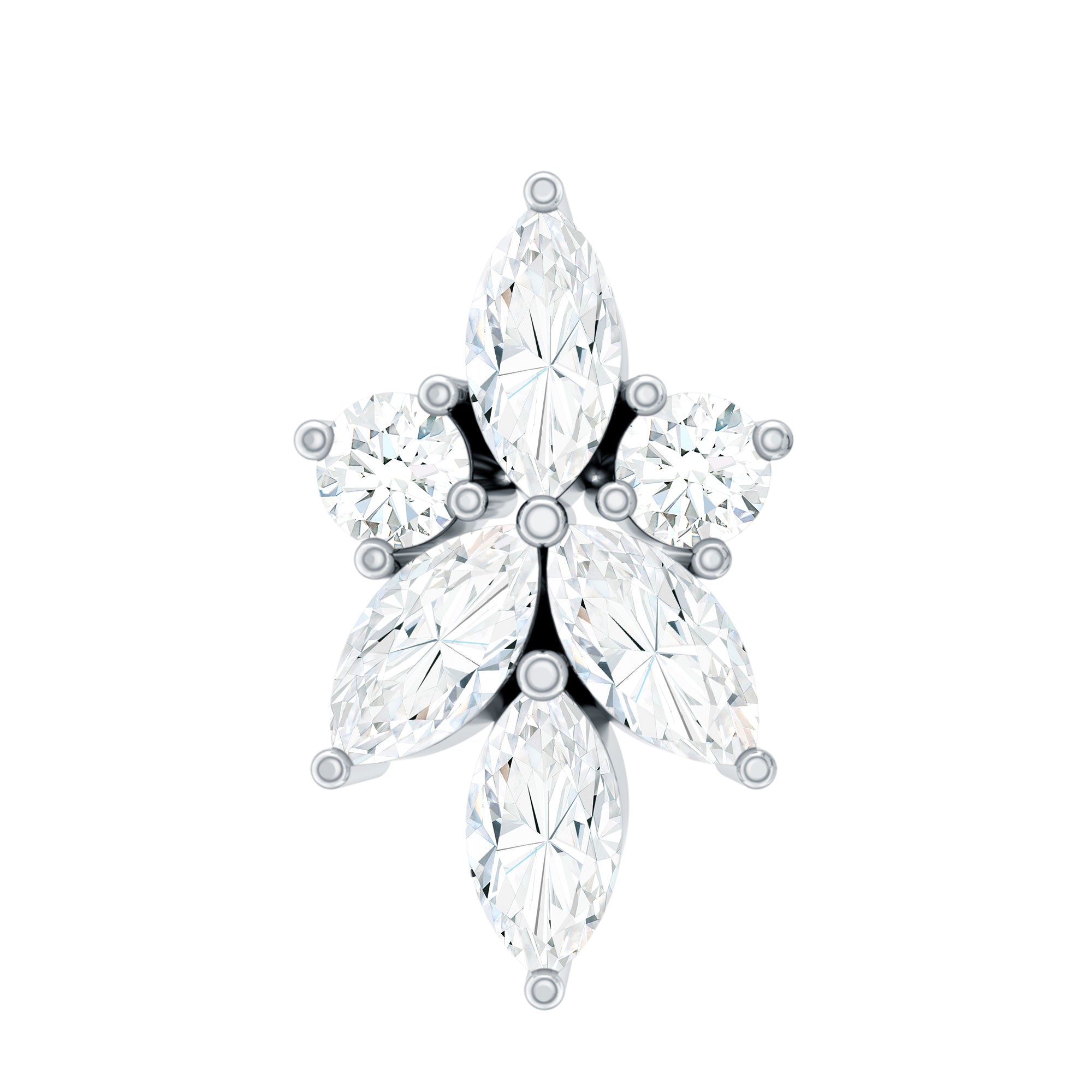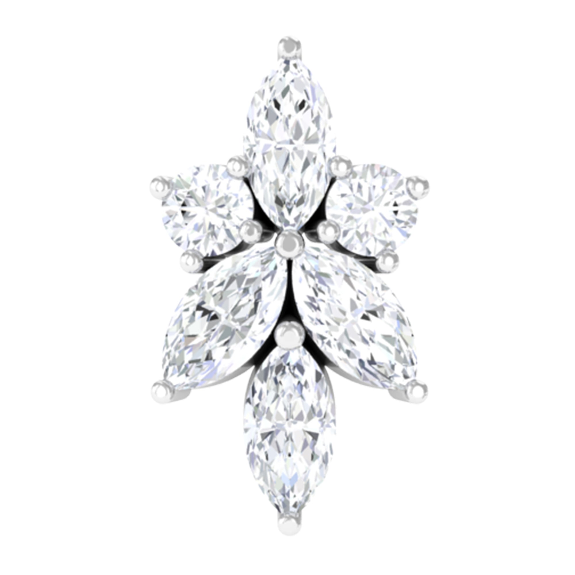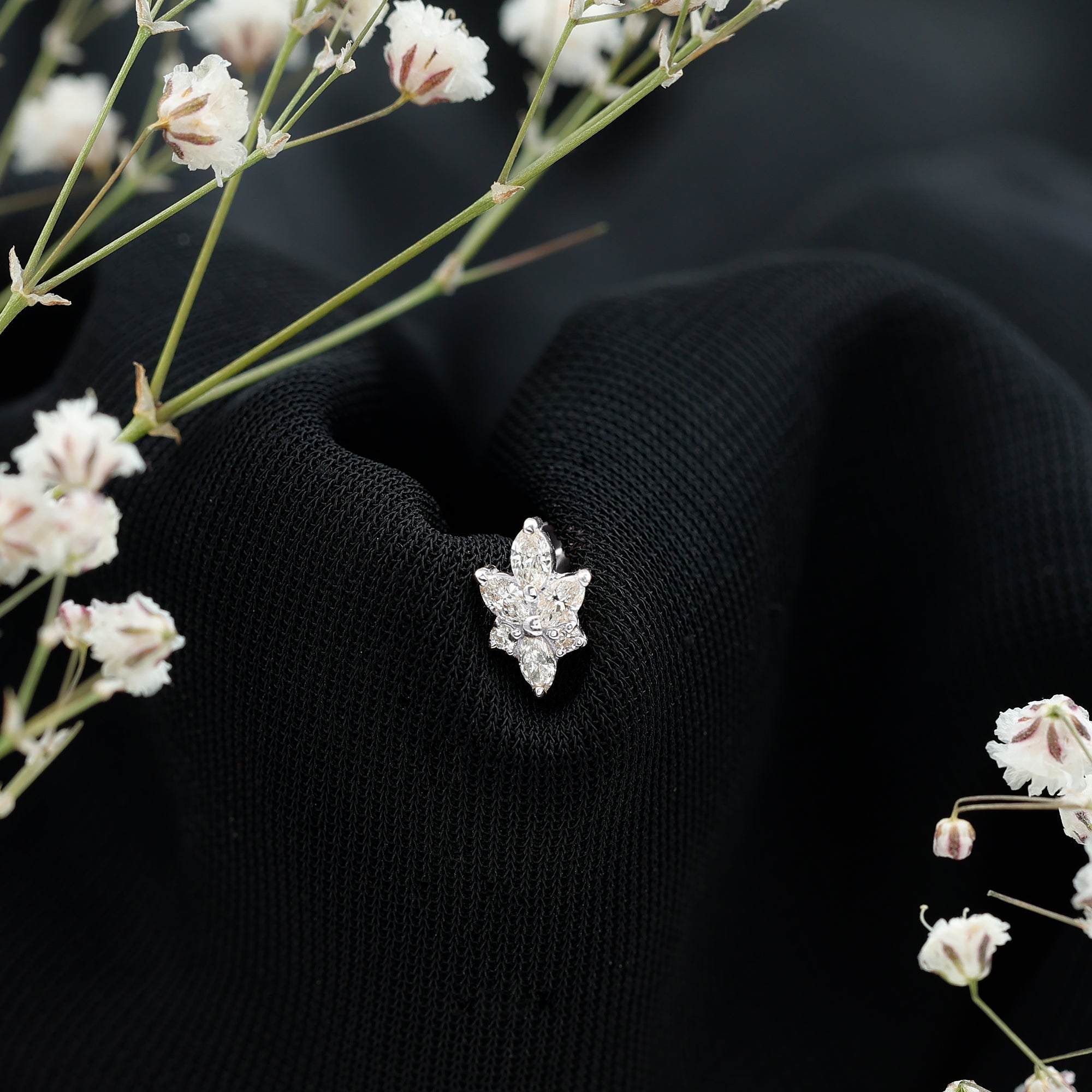 Marquise Diamond Cluster Flower Earring with Flat Back ‐ Lab - ( EF-VS ) / 18K White Gold / Flat Back 4.5 MM