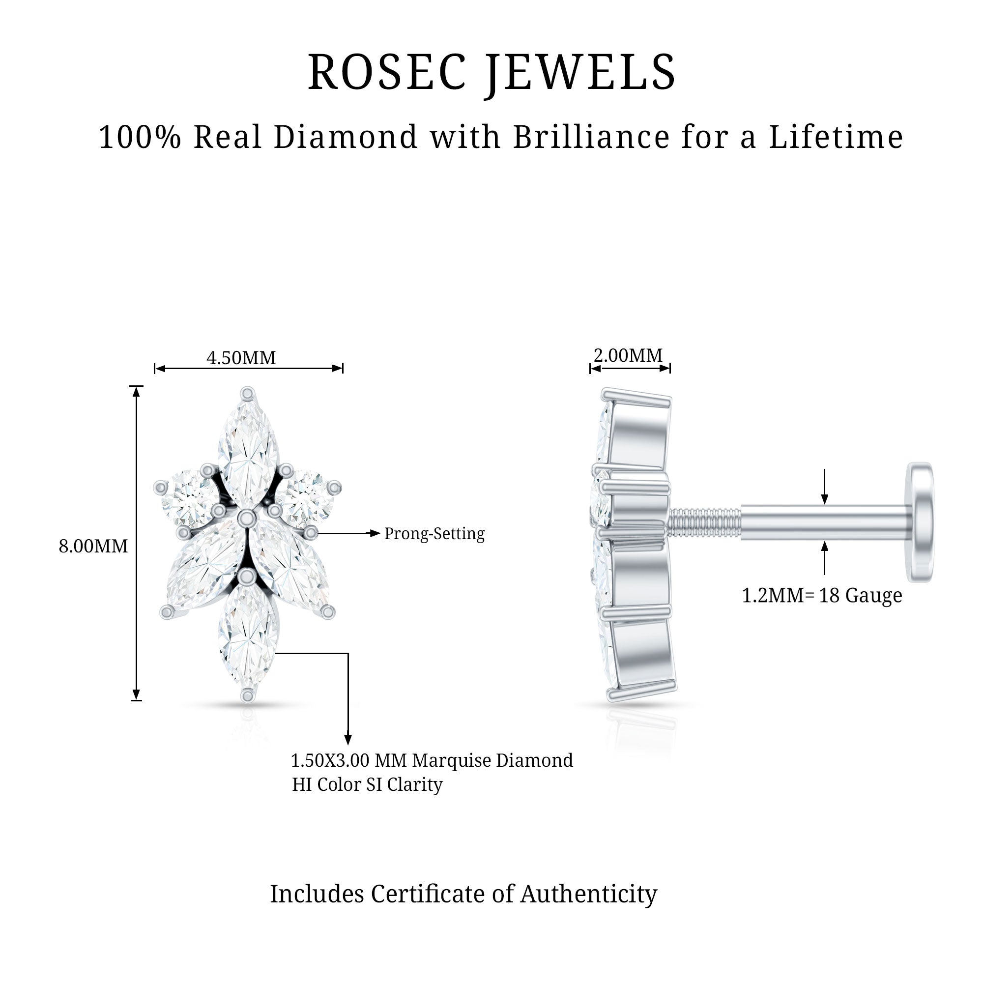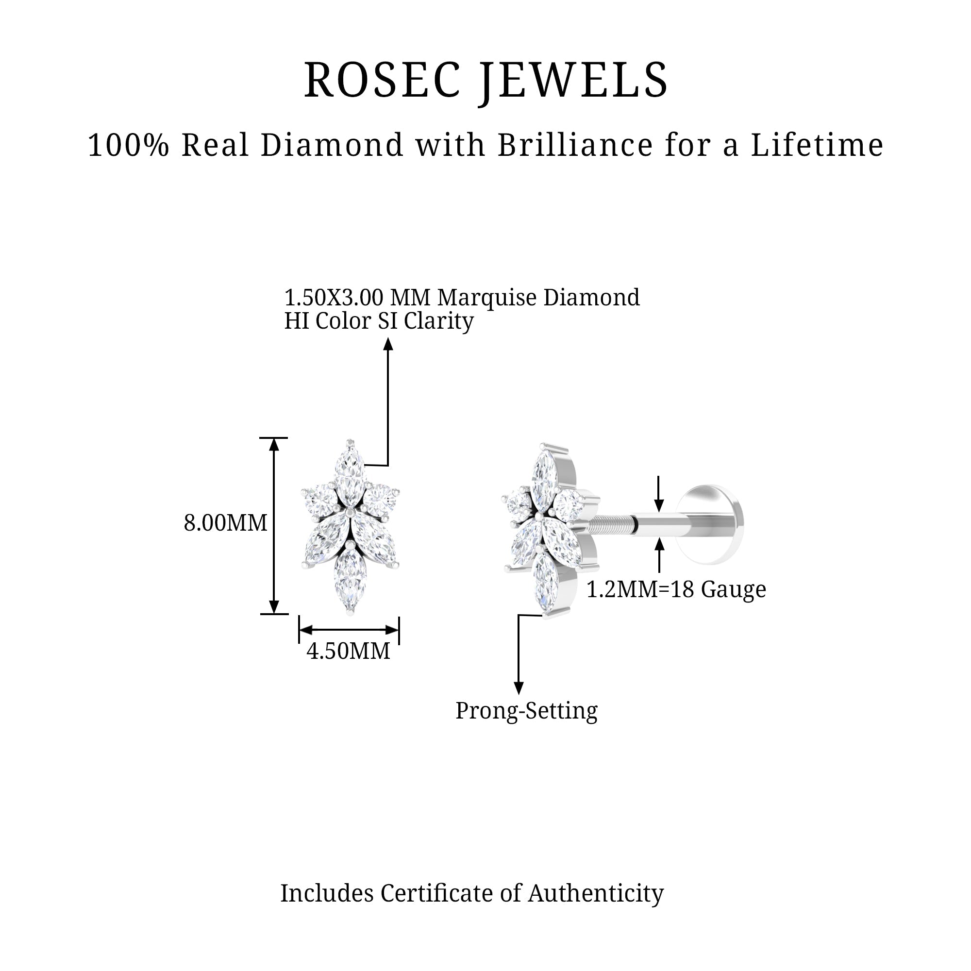 Marquise Diamond Cluster Flower Earring with Flat Back ‐ Natural - ( HI-SI ) / 18K White Gold / Flat Back 4.5 MM