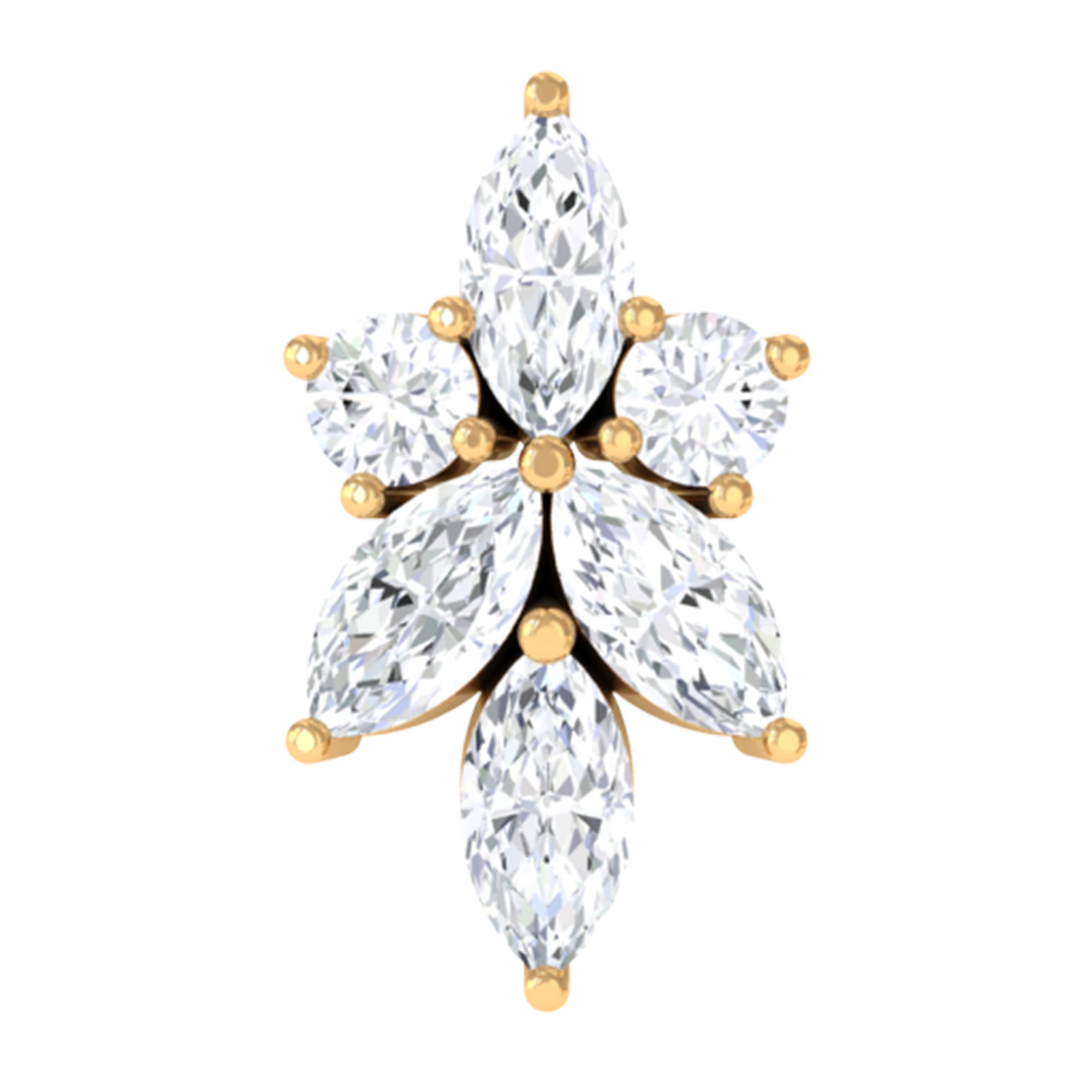 Marquise Diamond Cluster Flower Earring with Flat Back ‐ Lab - ( EF-VS ) / 18K Yellow Gold / Flat Back 4.5 MM