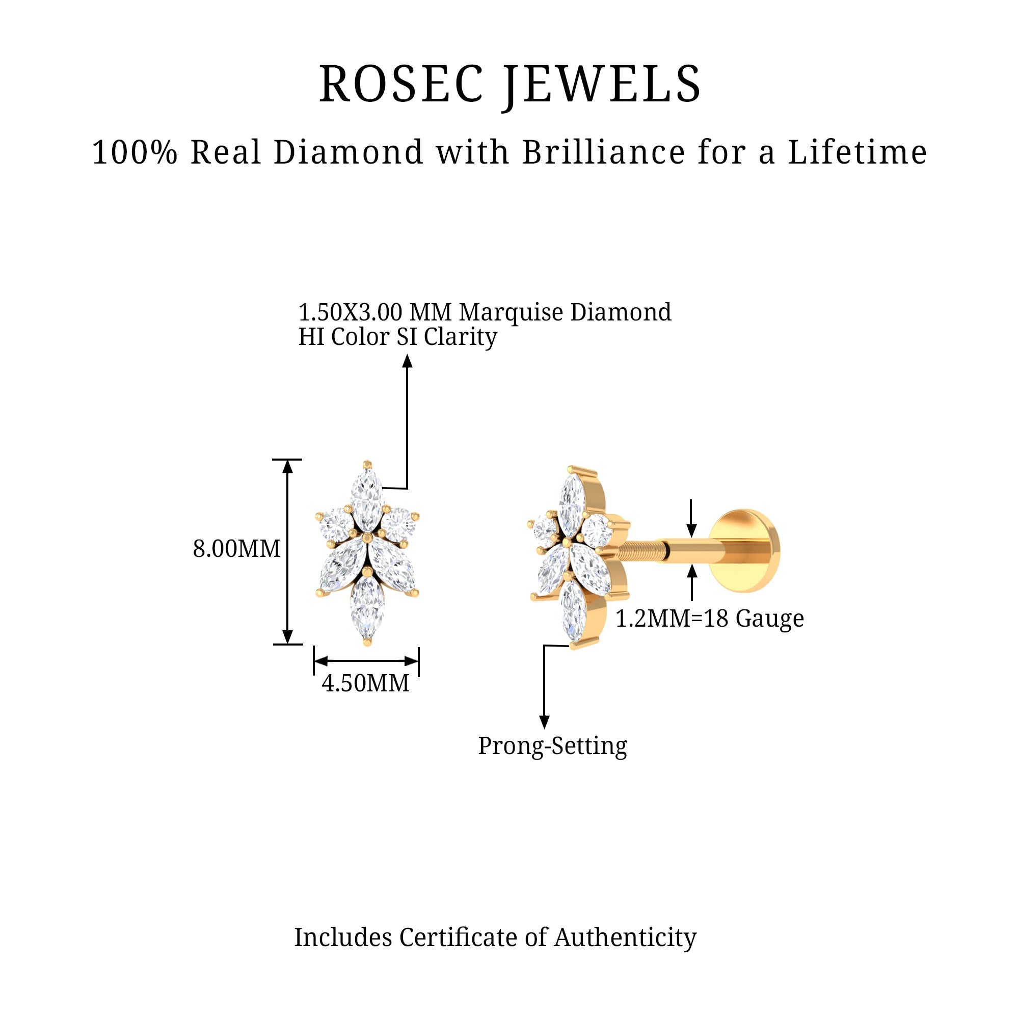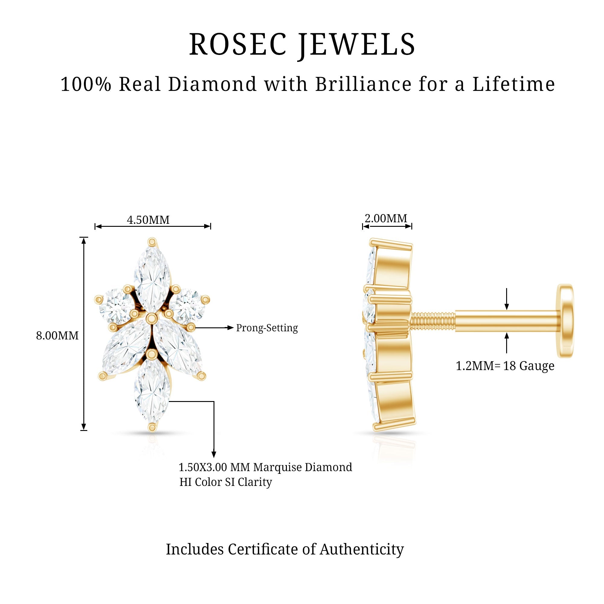 Marquise Diamond Cluster Flower Earring with Flat Back ‐ Natural - ( HI-SI ) / 14K Yellow Gold / Flat Back 5.5 MM