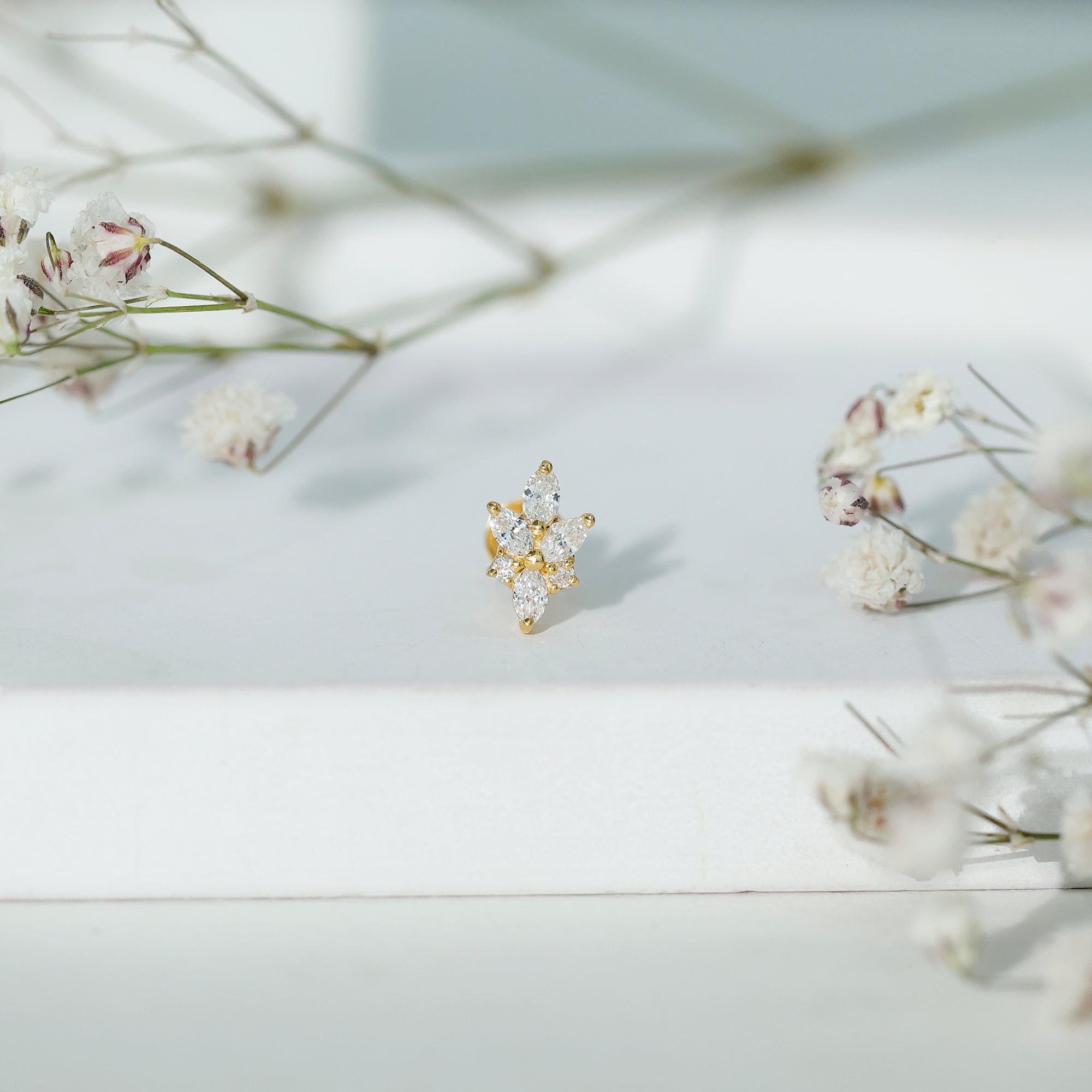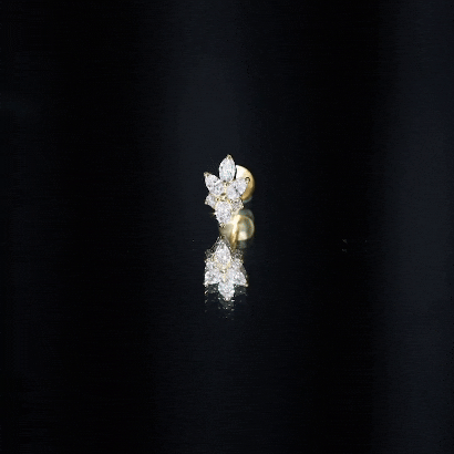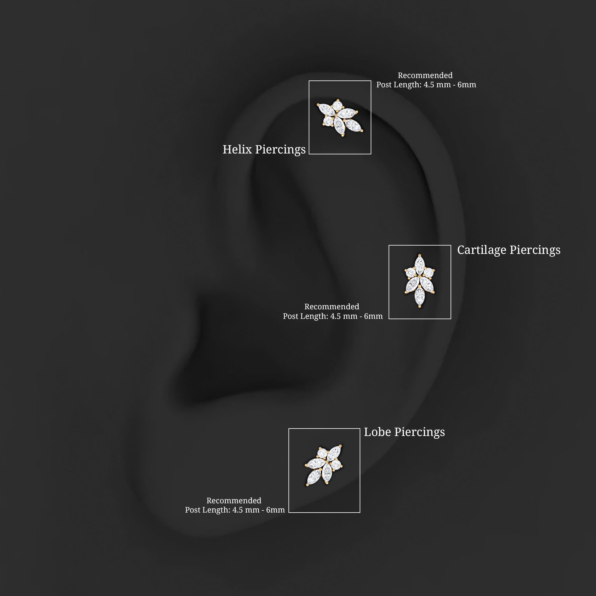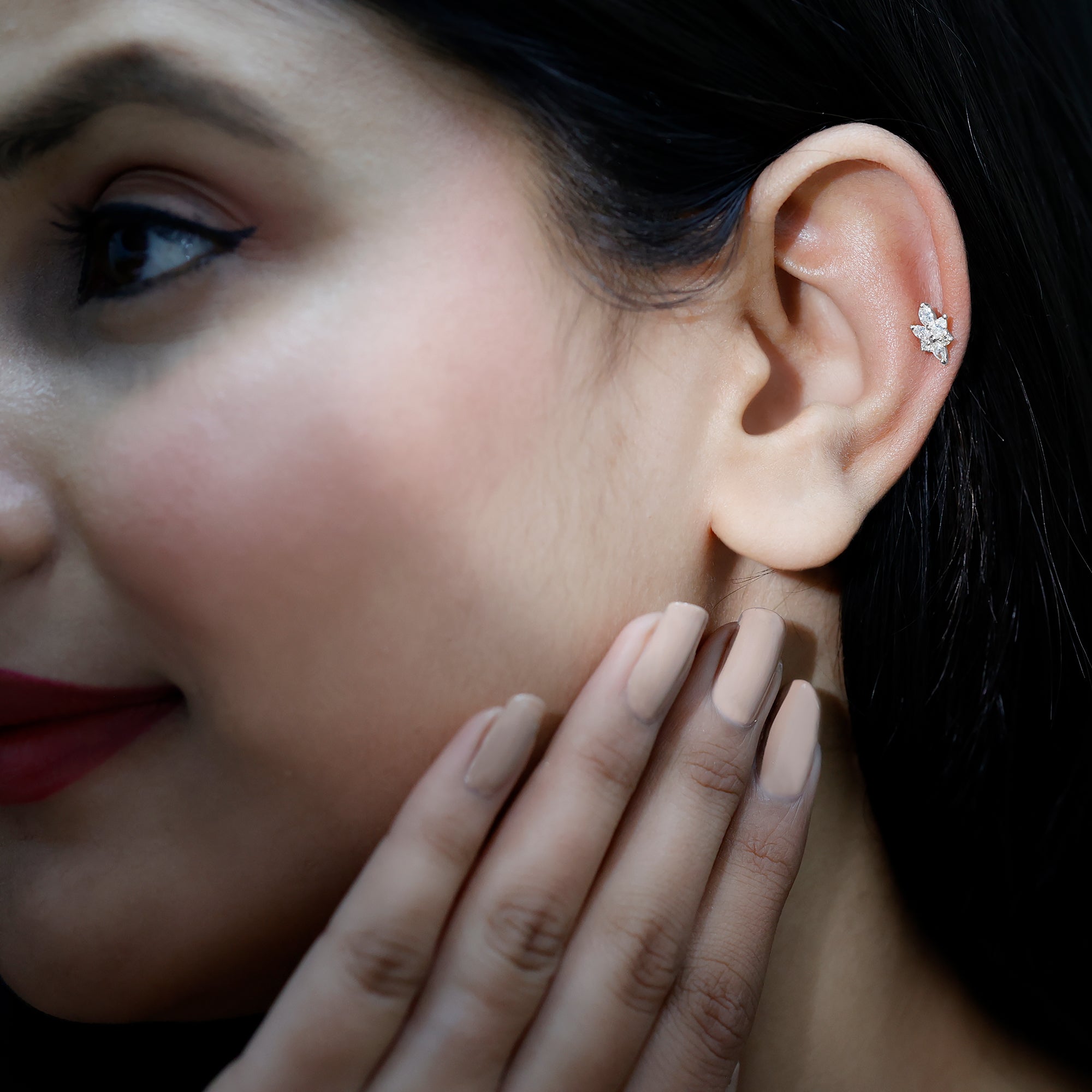 - You can wear this Diamond Flower Earring on the Conch, Helix, Cartilage, and Upper Lobe, it adds a touch of natures beauty to your unique style.