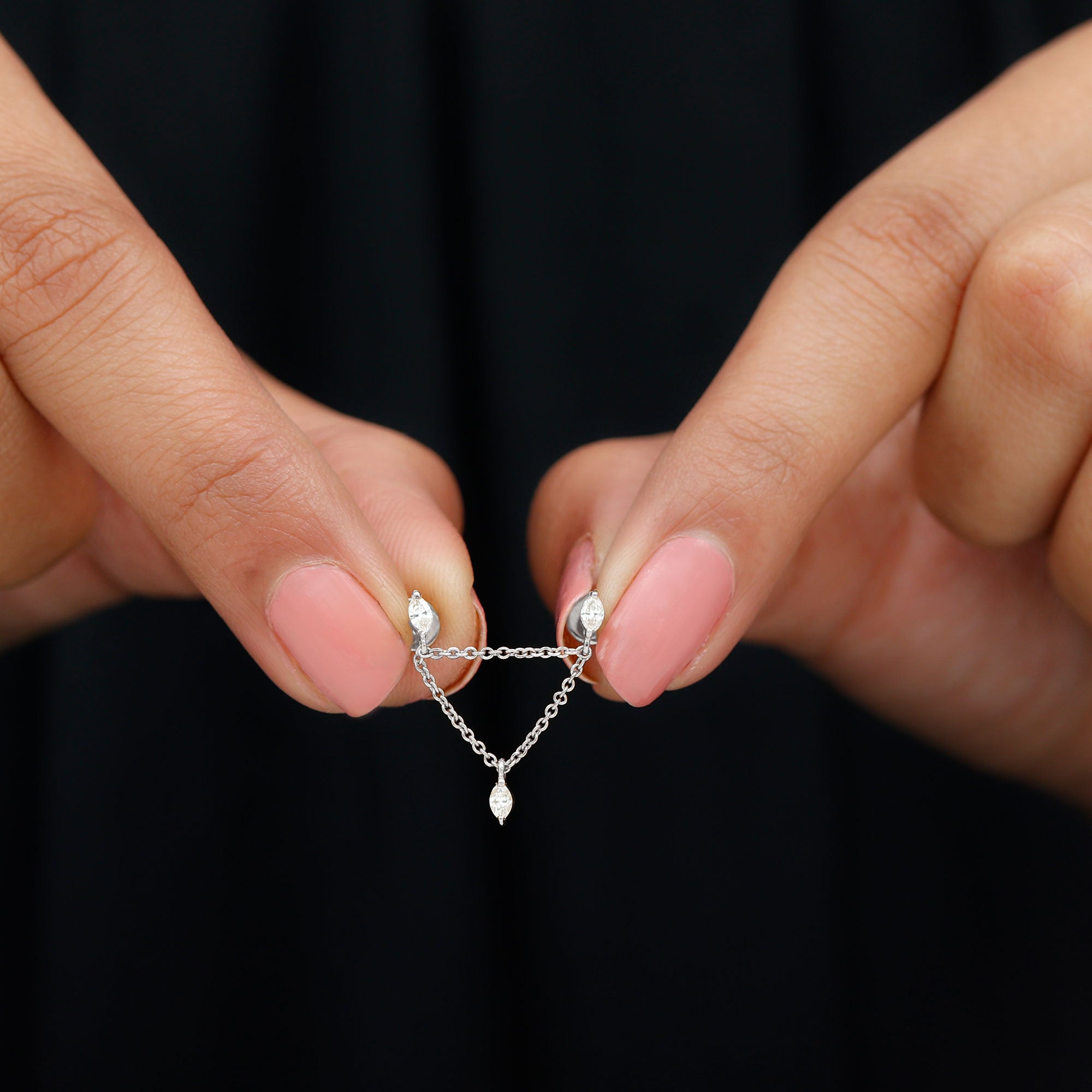 Marquise Diamond Double Piercing Earring with Dangling Chain ‐ Lab - ( EF-VS ) / 14K White Gold / Flat Back 4.5 MM