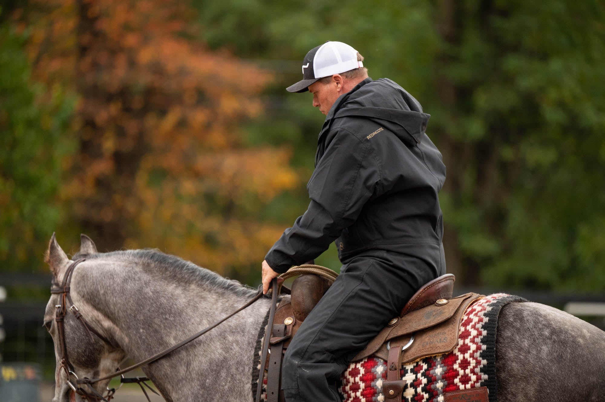 The Men’s Winter Insulated Jumpsuit delivers full-body warmth, waterproof protection, and practical features built for life in and out of the saddle. With a breathable, insulated shell, adjustable hood, easy-on leg zips over boots, and plenty of pockets, it’s designed to keep you comfortable and dry through the toughest winter weather. Built for riders, ready for anything.