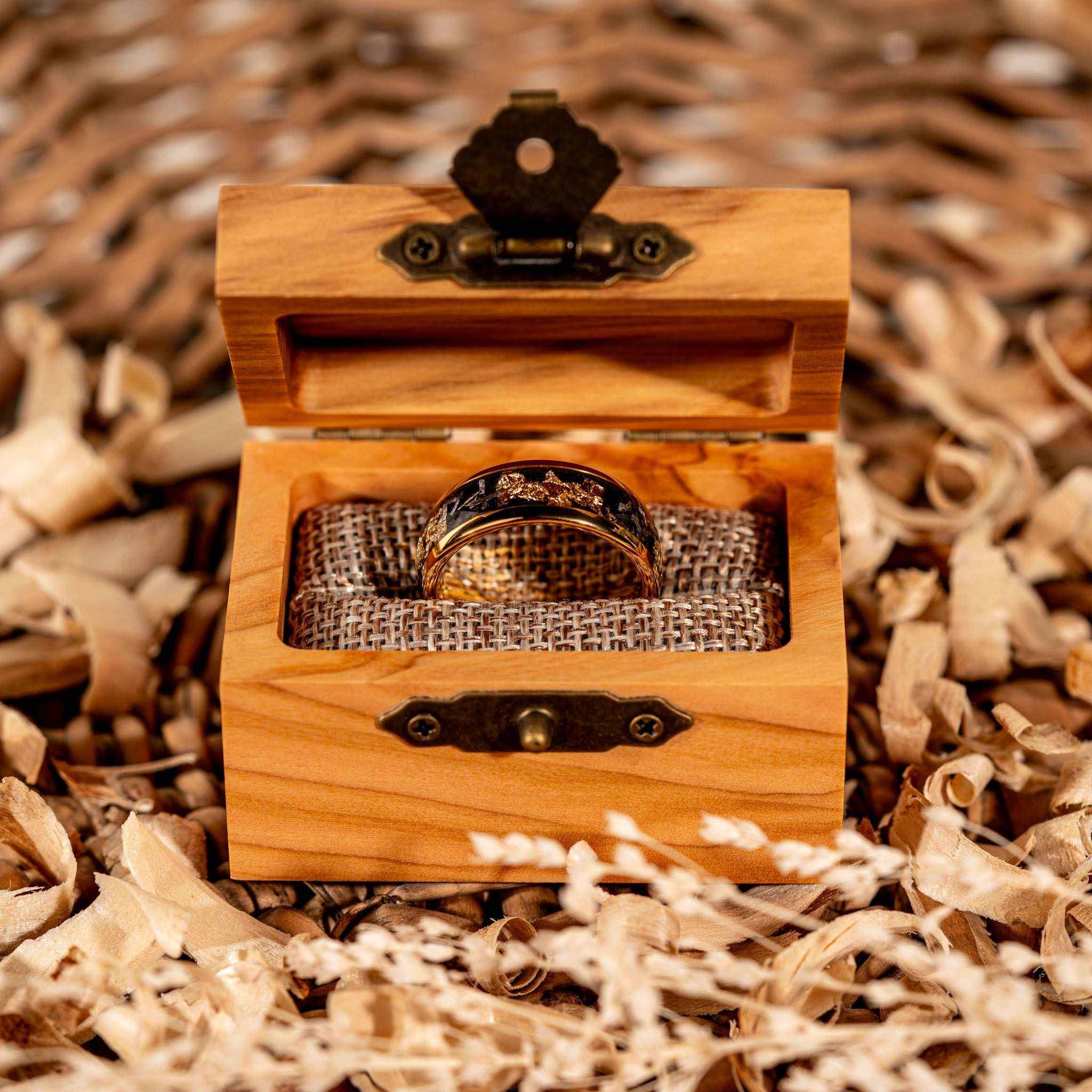 Meteorite Ring x 22K Gold Leaf – Tungsten Carbide Ring for Men ‐ 8 US