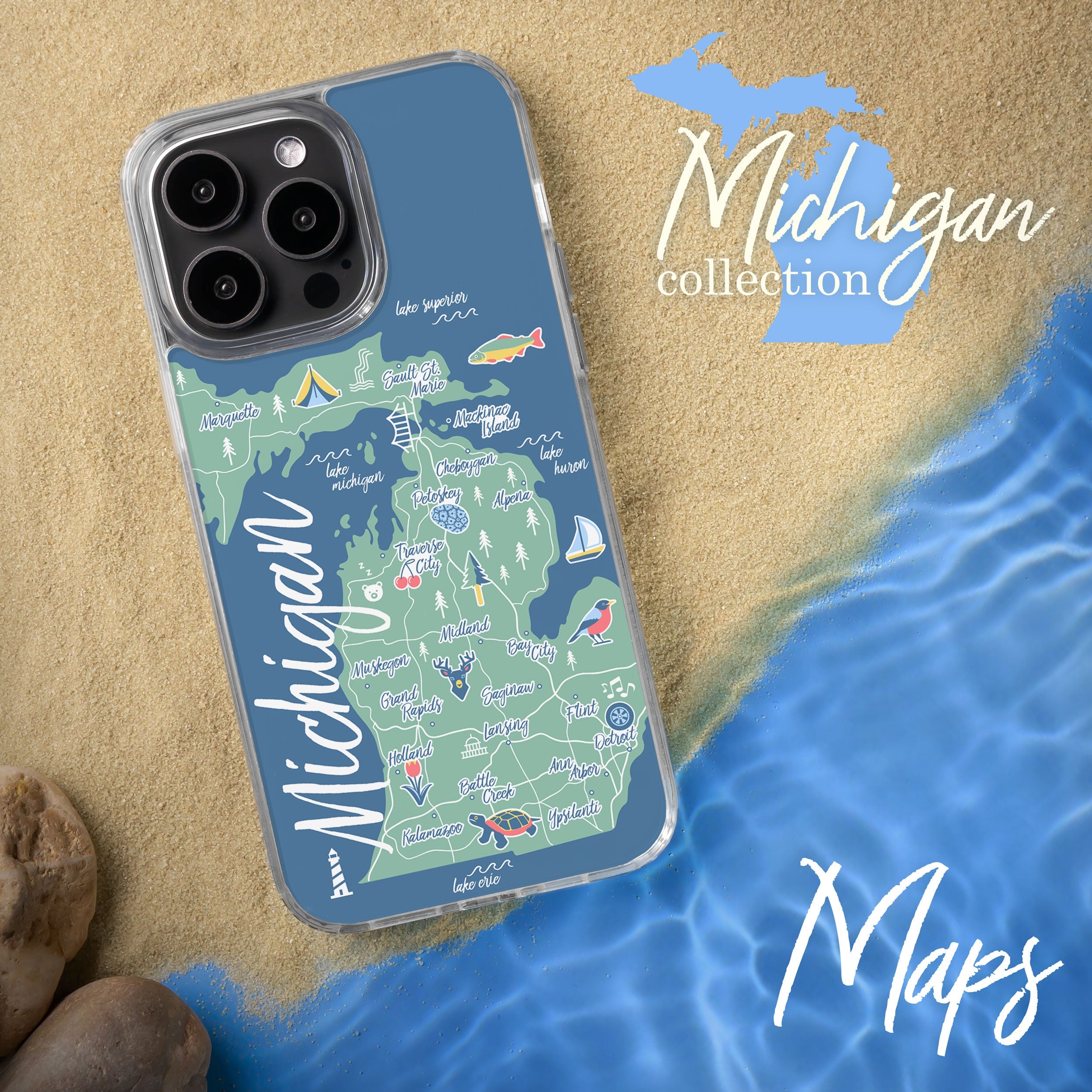 Michigan HD Apple iPhone 14 Series Mag-Safe Phone Case ‐ Map / iPhone 14