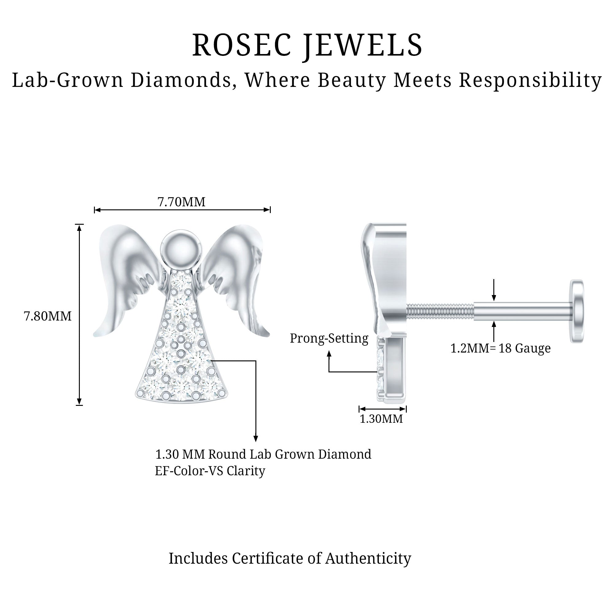 Minimal Diamond Angel Upper Lobe Earring ‐ Lab - ( EF-VS ) / 10K White Gold / Flat Back 5.5 MM