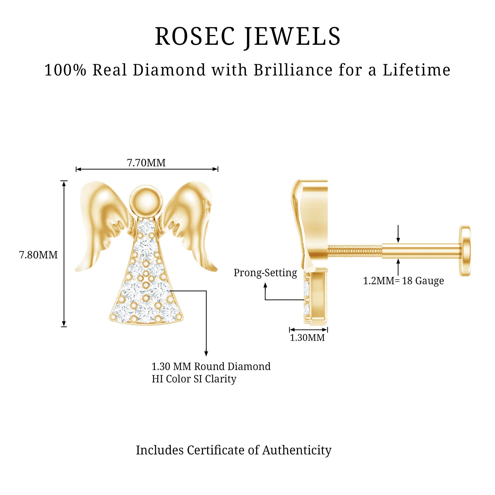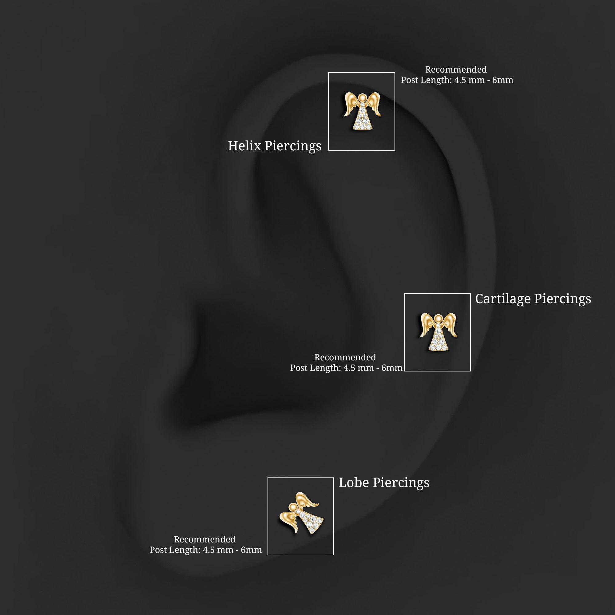 Angels, listen up! Your piercings are about to get an upgrade with this show-stopping Diamond Angel Earring. Were talking about round diamonds, sparkling in pure white, on an angel design set in hallmarked metal. And because we are all about that divine drama, slide this Diamond Earring into your Helix, Cartilage, or Upper Lobe Piercings. Comes with a Flat Back Closure to keep those angels secure, of course.Get ready to level up your ear game, because this angelic diamond earring isnt just an accessory – its your golden ticket to divine glam. Wings with the vibes? Heavenly!