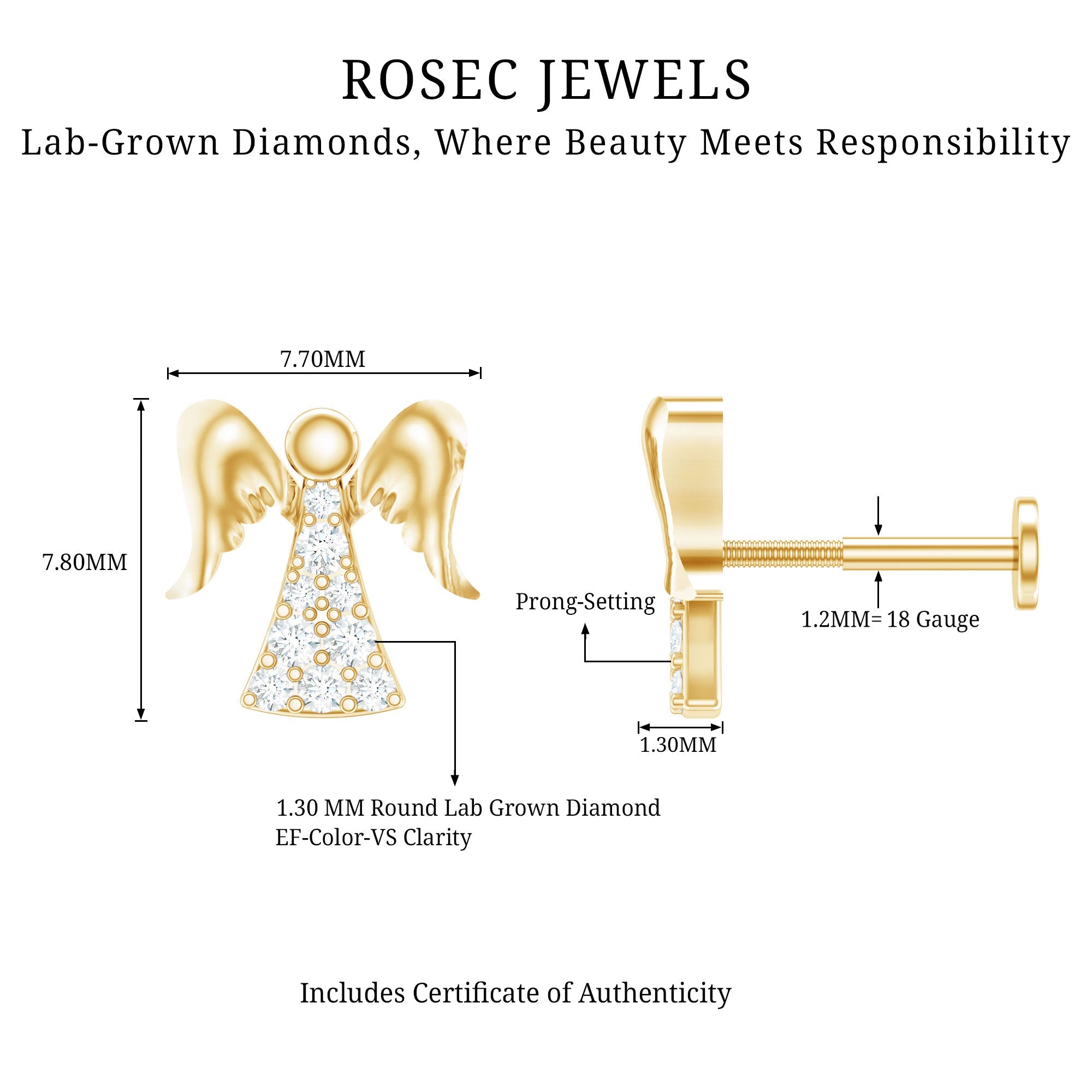 Minimal Diamond Angel Upper Lobe Earring ‐ Lab - ( EF-VS ) / 14K Yellow Gold / Flat Back 6.5 MM