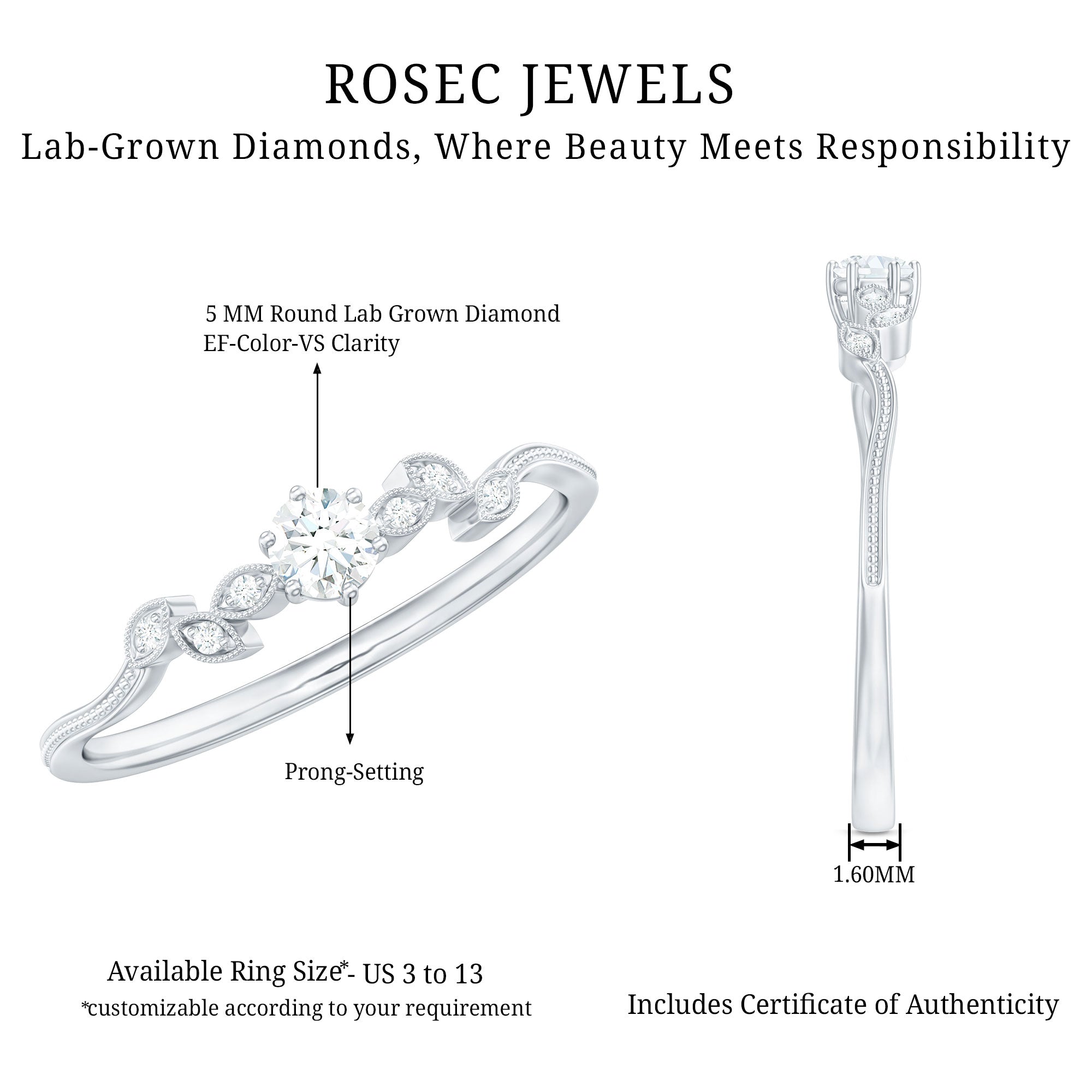 Minimal Lab Grown Diamond Leaf Ring with Beaded Detailing ‐ Lab - ( EF-VS ) / 14K White Gold / 5