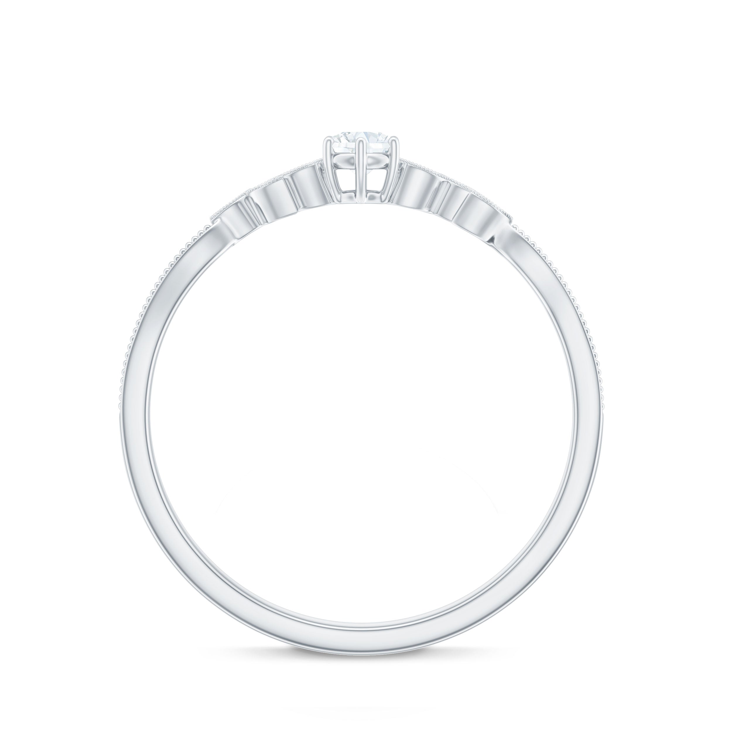 Minimal Lab Grown Diamond Leaf Ring with Beaded Detailing ‐ Lab - ( EF-VS ) / 14K White Gold / 5.5
