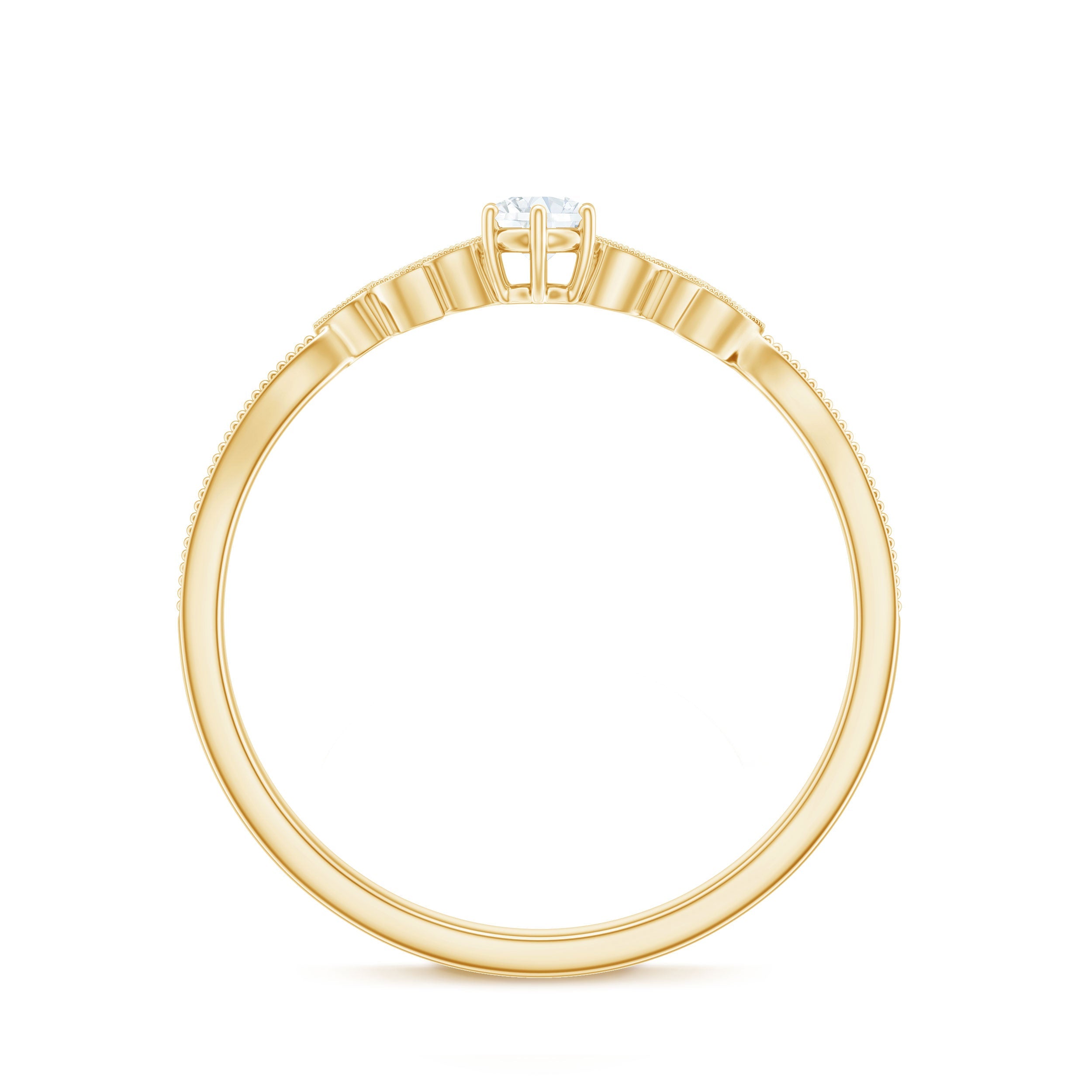Minimal Lab Grown Diamond Leaf Ring with Beaded Detailing ‐ Lab - ( EF-VS ) / 14K Yellow Gold / 5.5