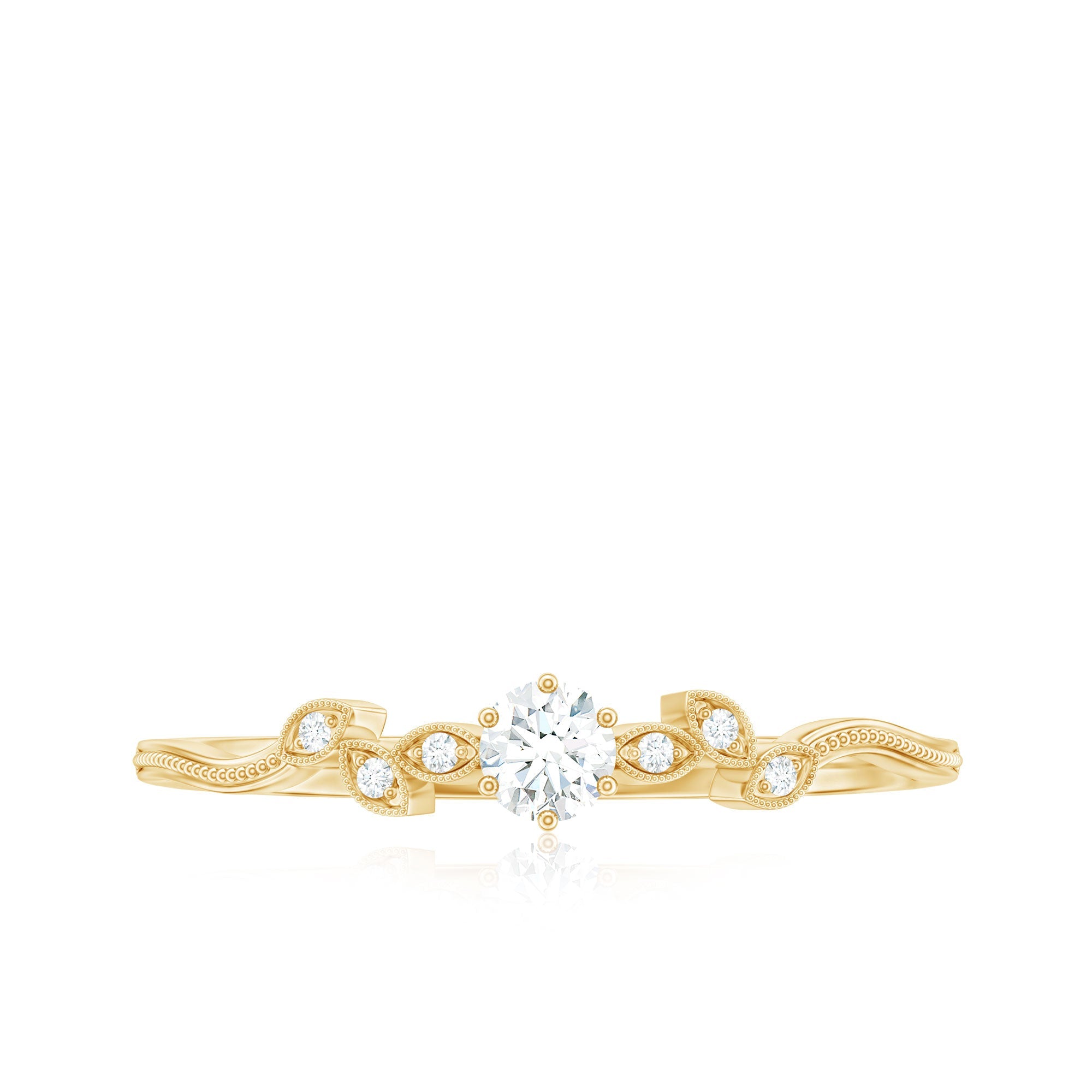 Minimal Lab Grown Diamond Leaf Ring with Beaded Detailing ‐ Lab - ( EF-VS ) / 14K Yellow Gold / 6