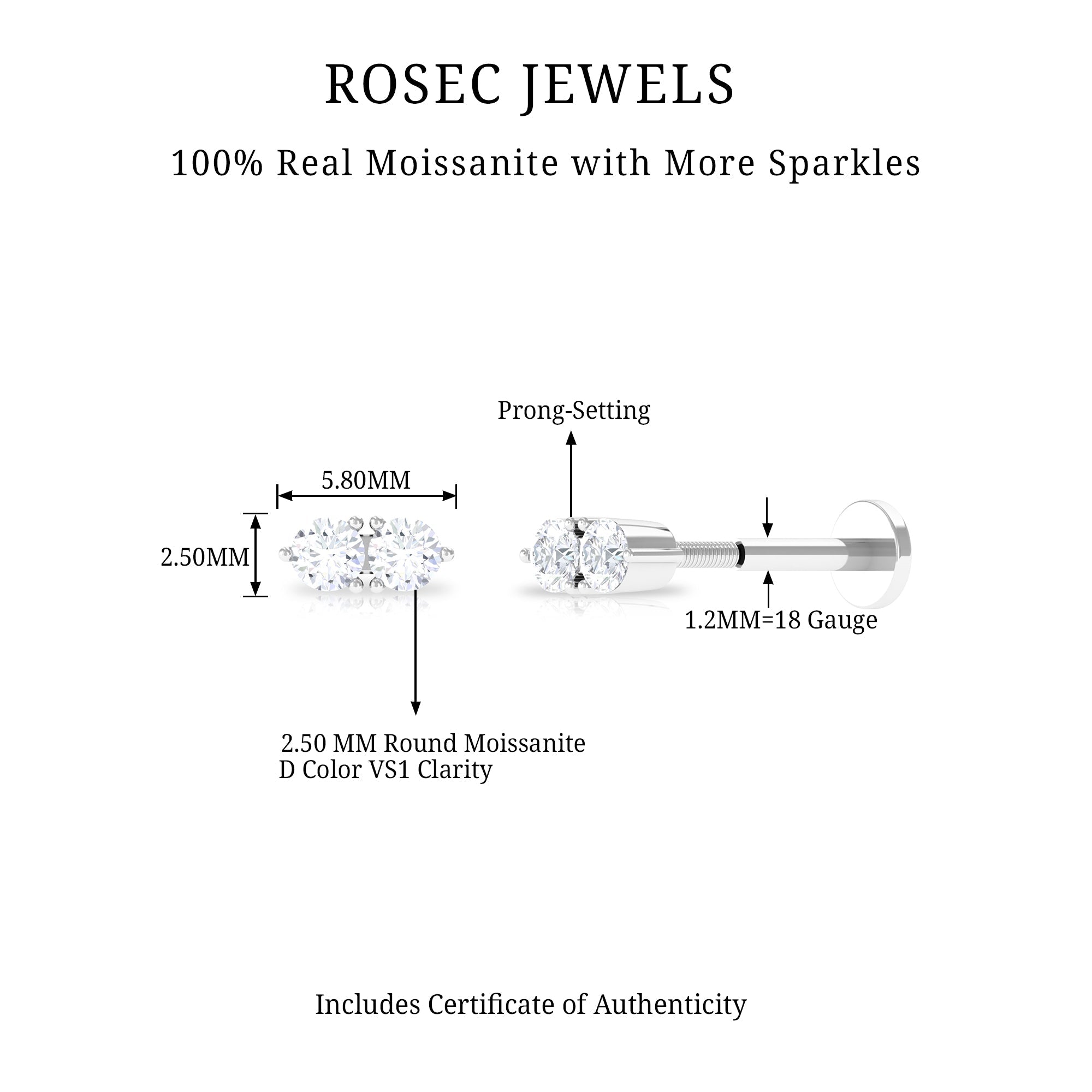Minimalist Moissanite 2 Stone Earring for Tragus Piercing ‐ D-VS1 / 14K White Gold / Flat Back 5.0 MM