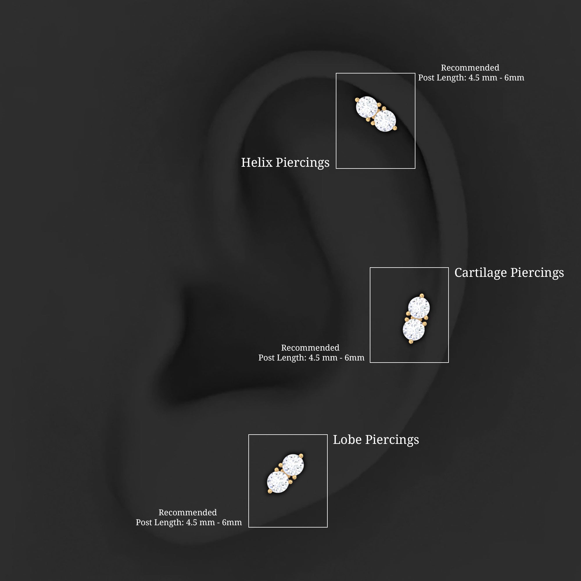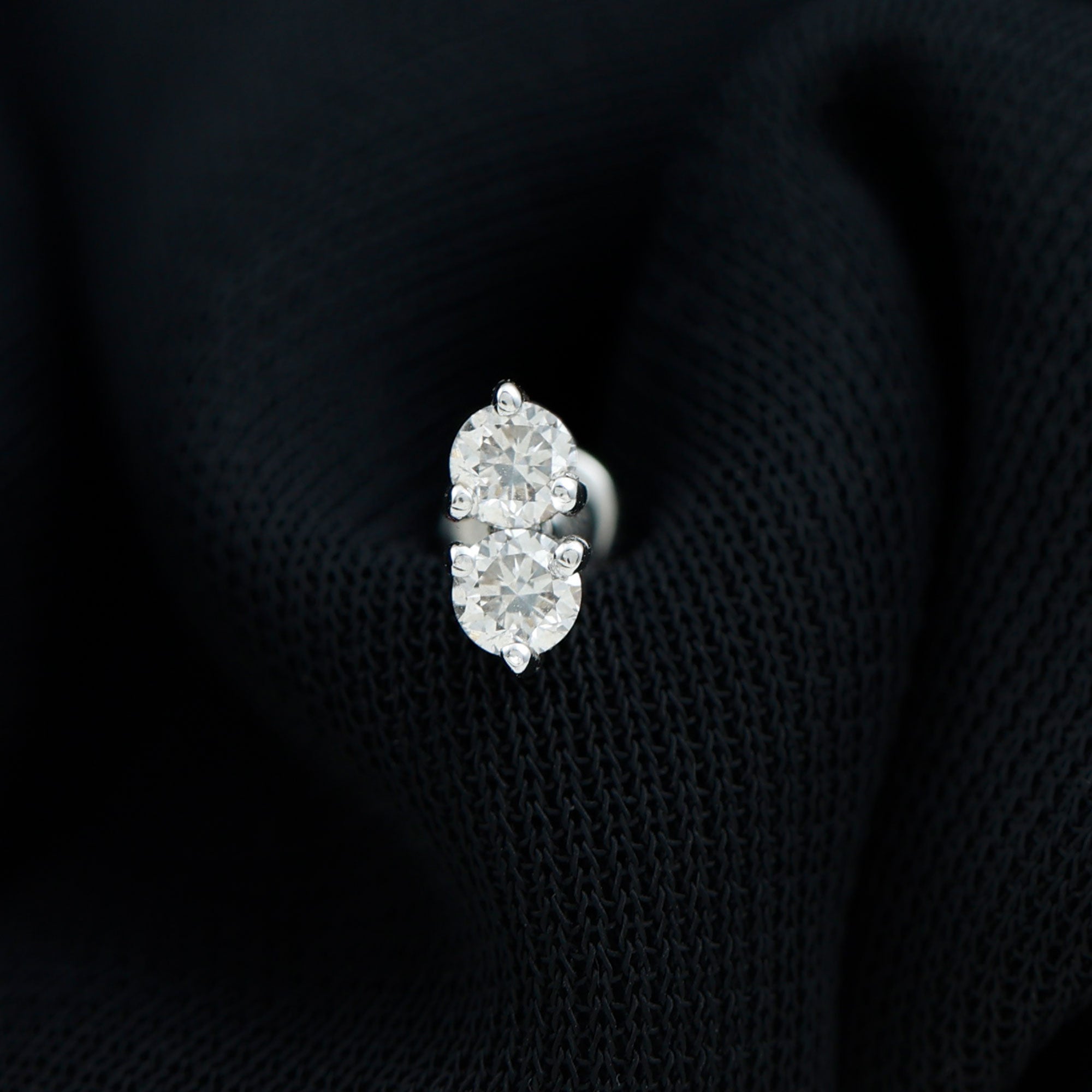 Minimalist Moissanite 2 Stone Earring for Tragus Piercing ‐ D-VS1 / 18K White Gold / Select Option