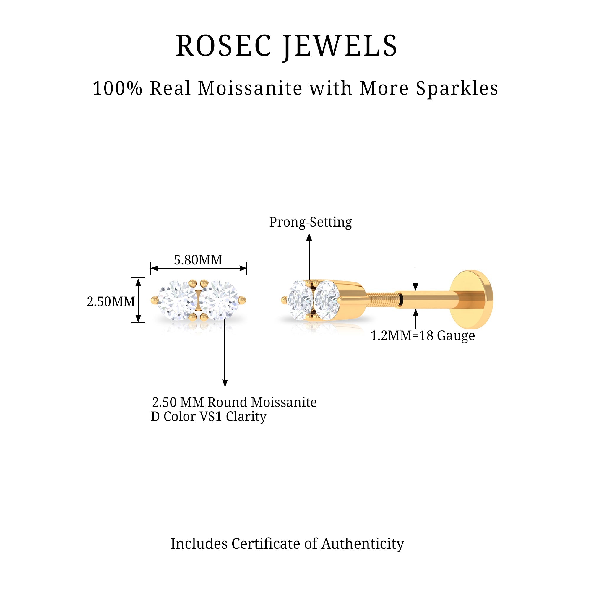 Minimalist Moissanite 2 Stone Earring for Tragus Piercing ‐ D-VS1 / 14K Yellow Gold / Flat Back 5.0 MM