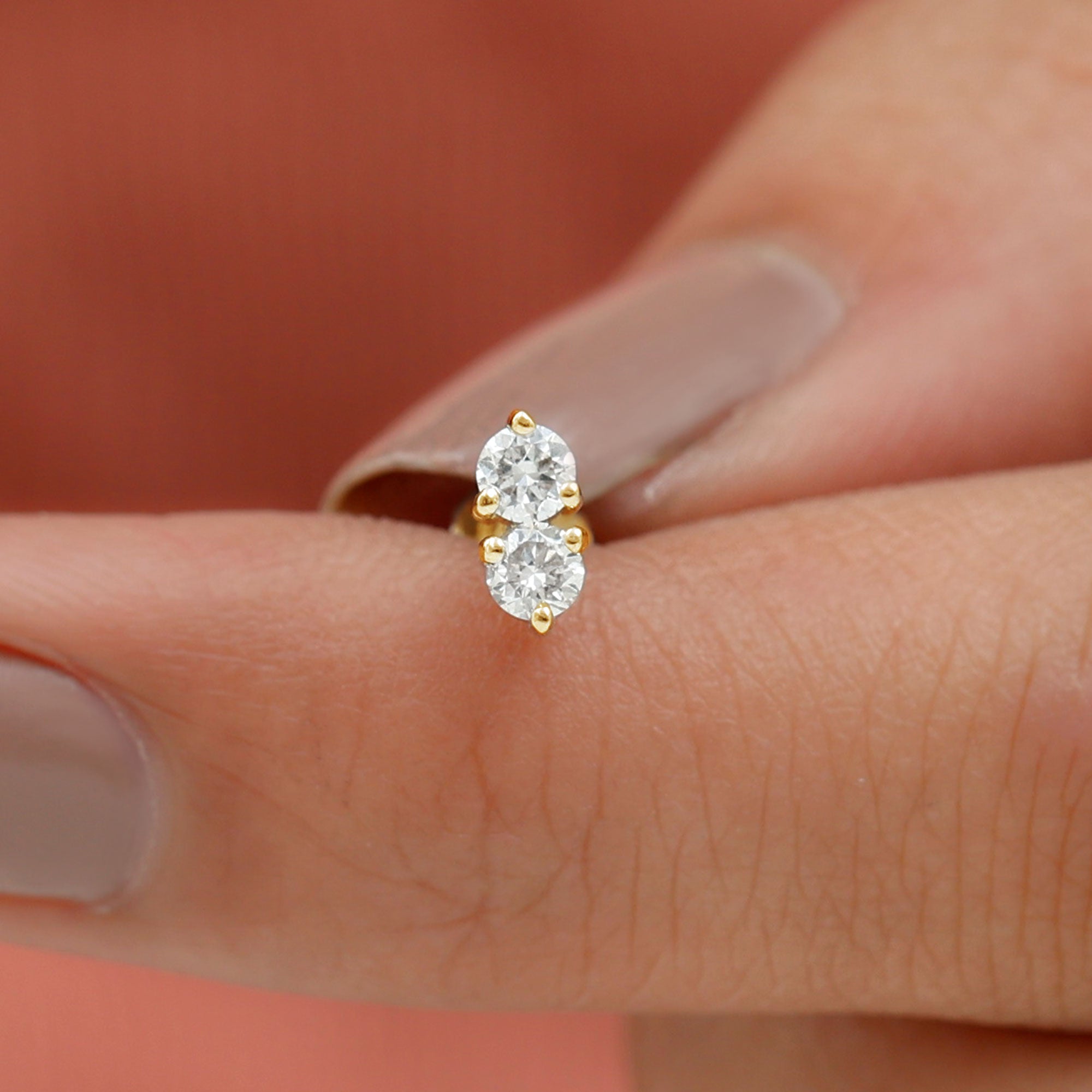 Minimalist Moissanite 2 Stone Earring for Tragus Piercing