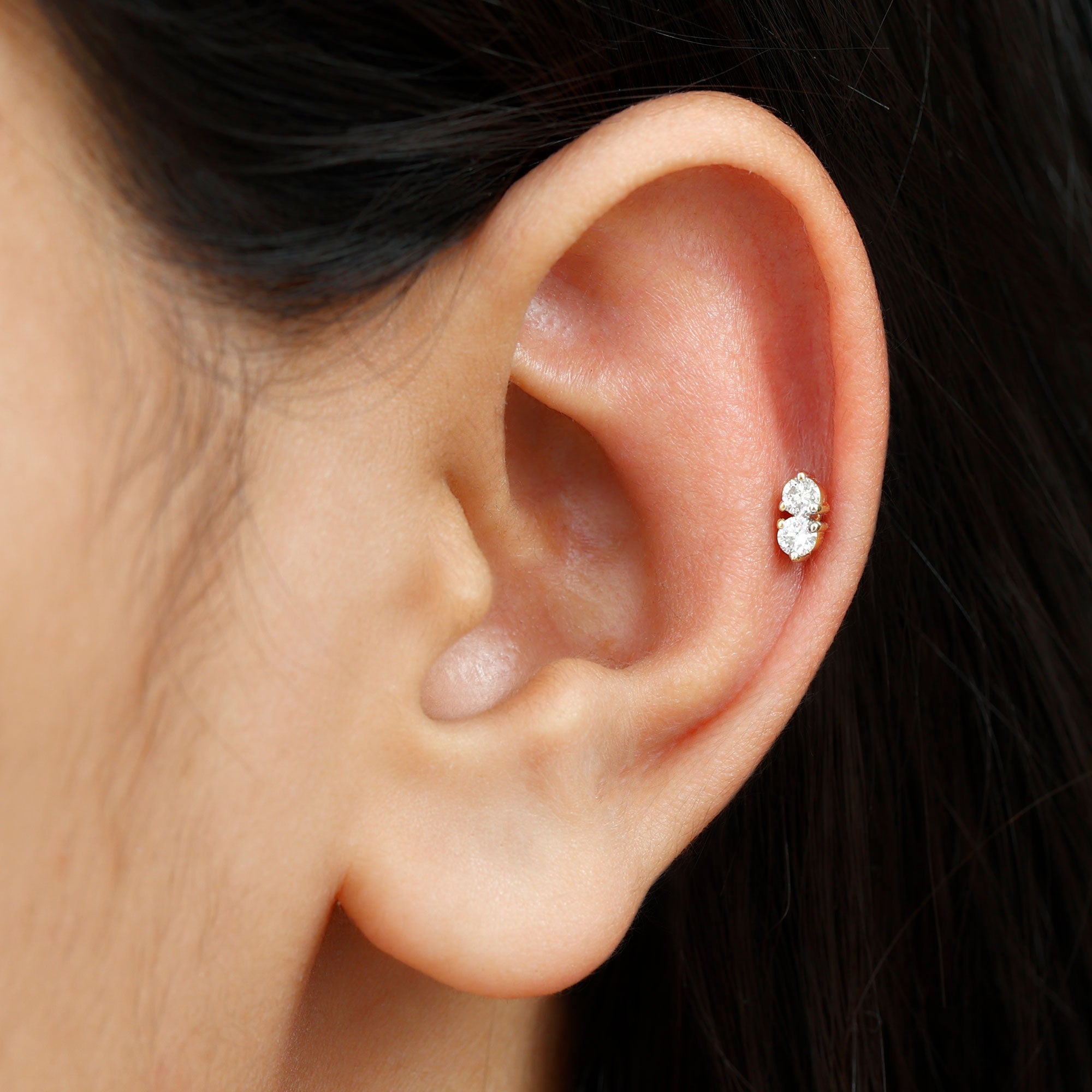 Minimalist Moissanite 2 Stone Earring for Tragus Piercing ‐ D-VS1 / 14K Yellow Gold / Select Option