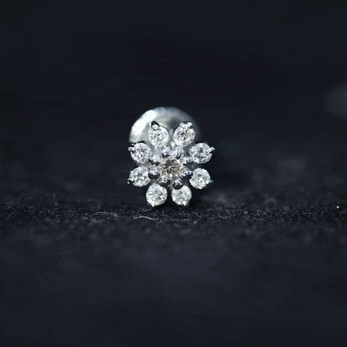 Minimalist Moissanite Flower Cartilage Earring ‐ D-VS1 / 18K White Gold / Flat Back 7.5 MM