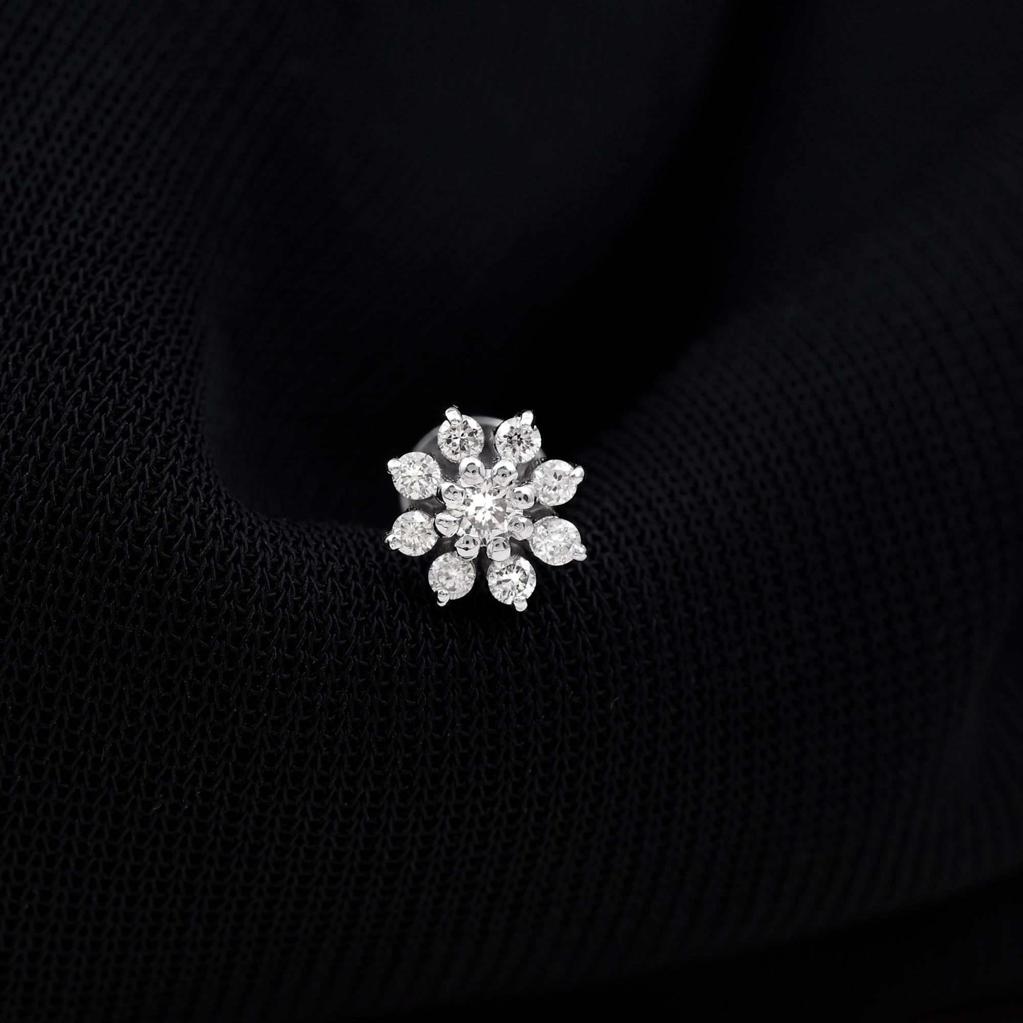 Minimalist Moissanite Flower Cartilage Earring ‐ D-VS1 / 10K White Gold / Flat Back 7.5 MM