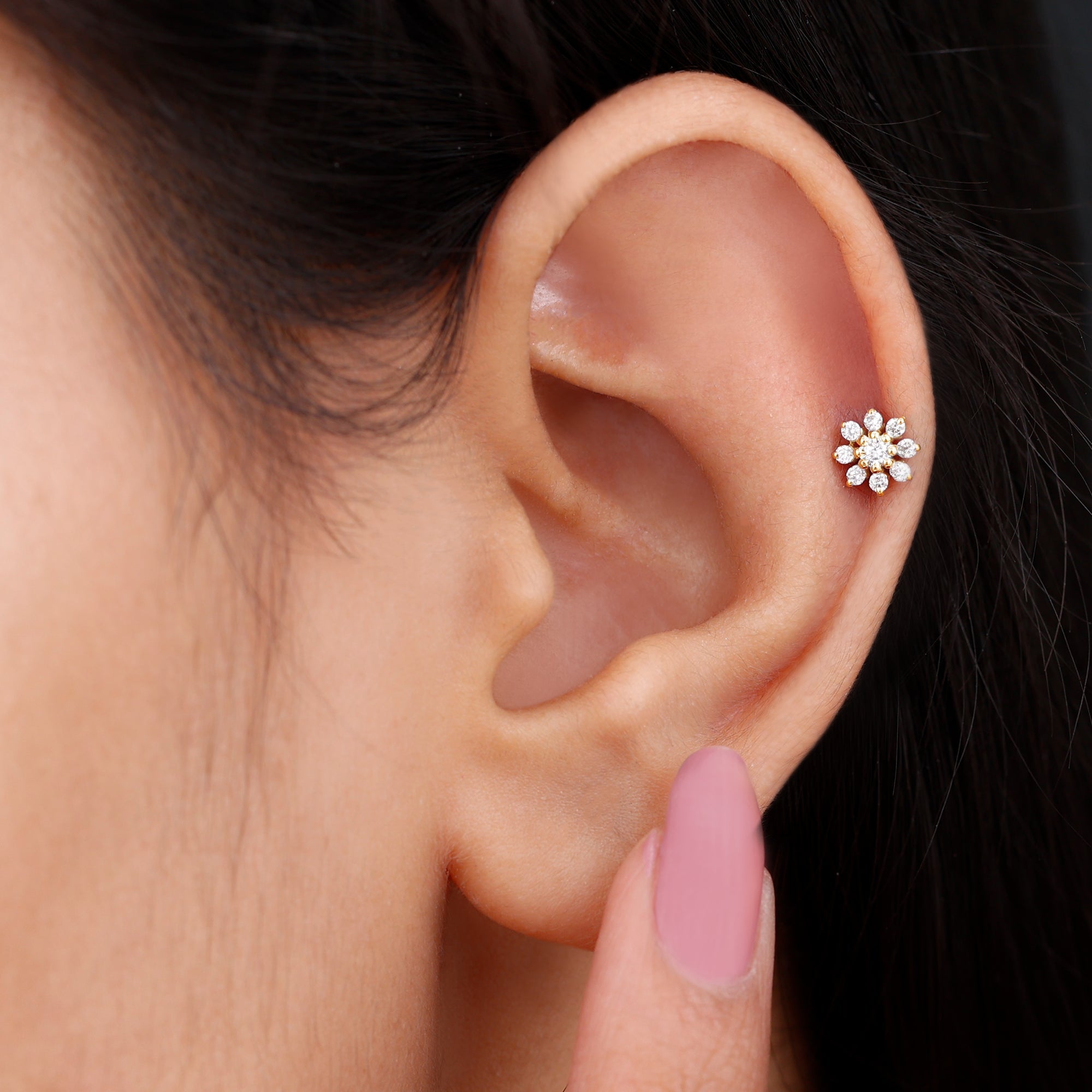 Minimalist Moissanite Flower Cartilage Earring