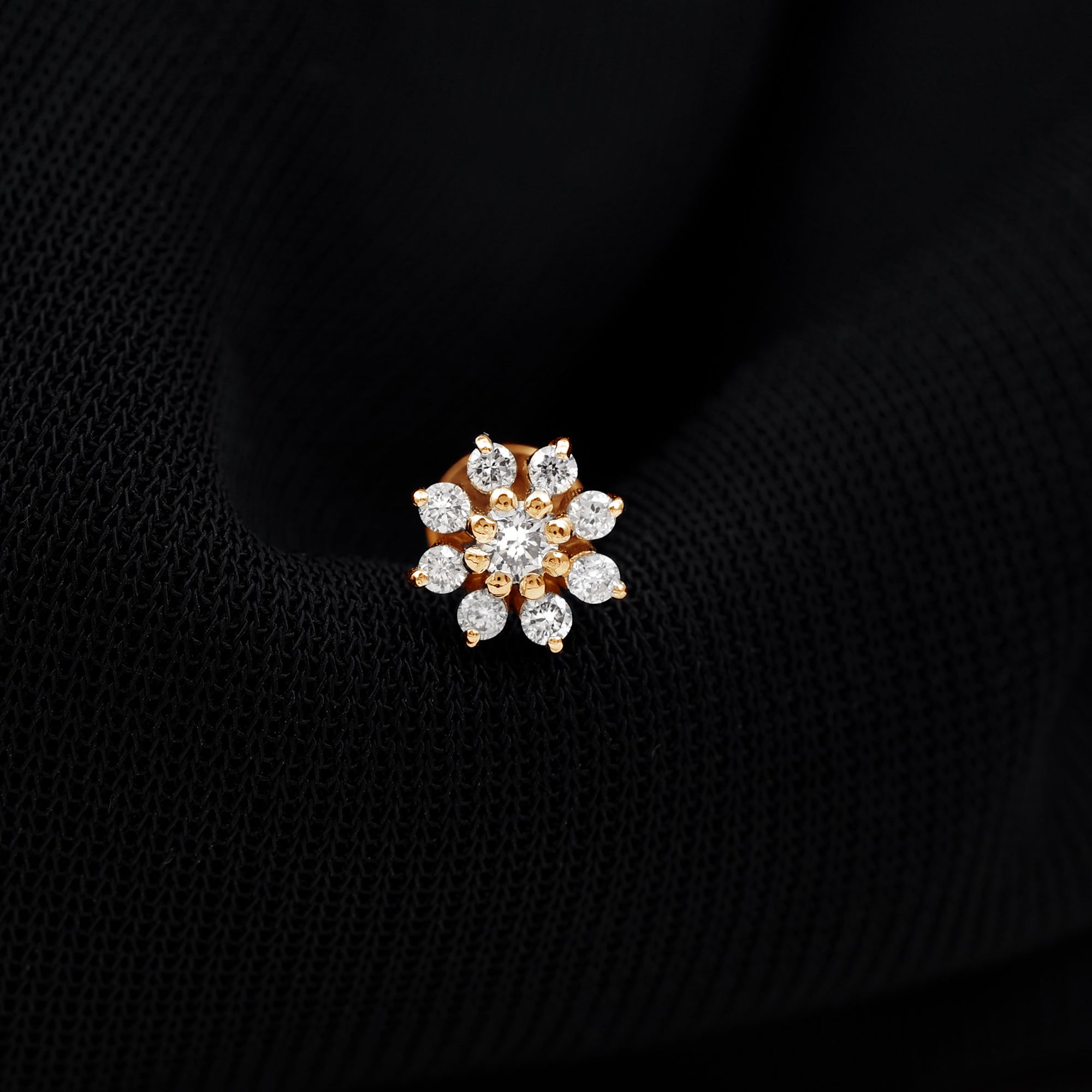 Minimalist Moissanite Flower Cartilage Earring ‐ D-VS1 / 10K Yellow Gold / Flat Back 7.5 MM