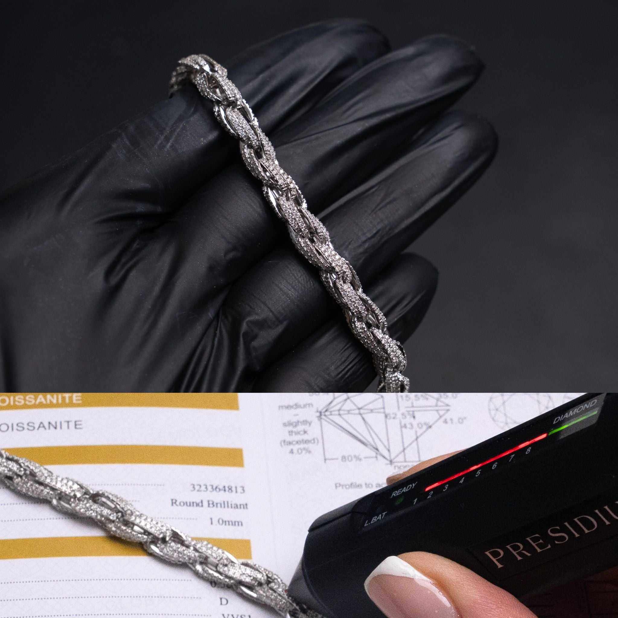 Experience next-level shine with this fully iced rope bracelet, set with genuine VVS D Color moissanite stones. What sets rope chains apart is their 3D design stones cover all sides, giving it a complete iced look.