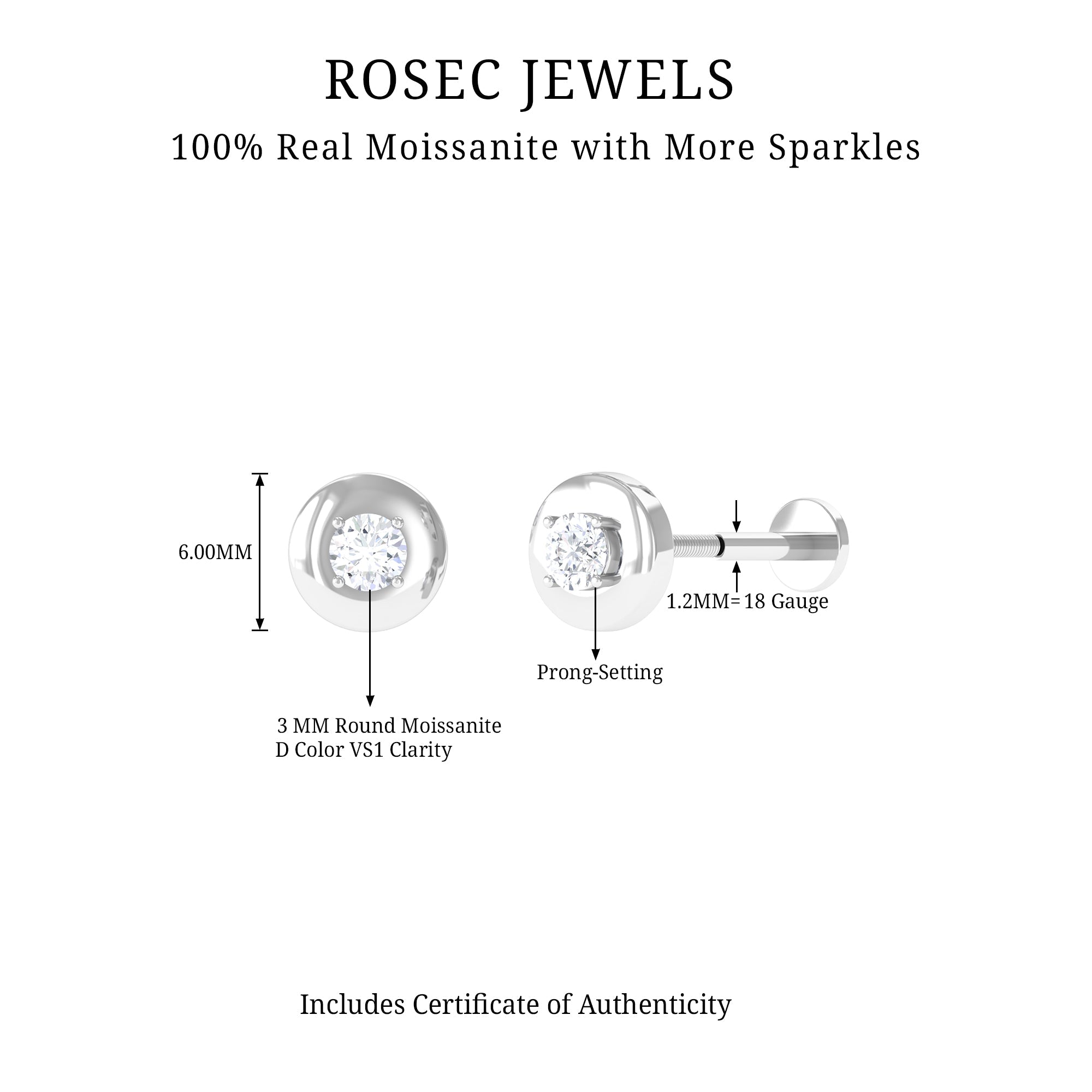 Moissanite Circle Solitaire Cartilage Earring in Gold ‐ D-VS1 / 14K White Gold / Flat Back 4.5 MM