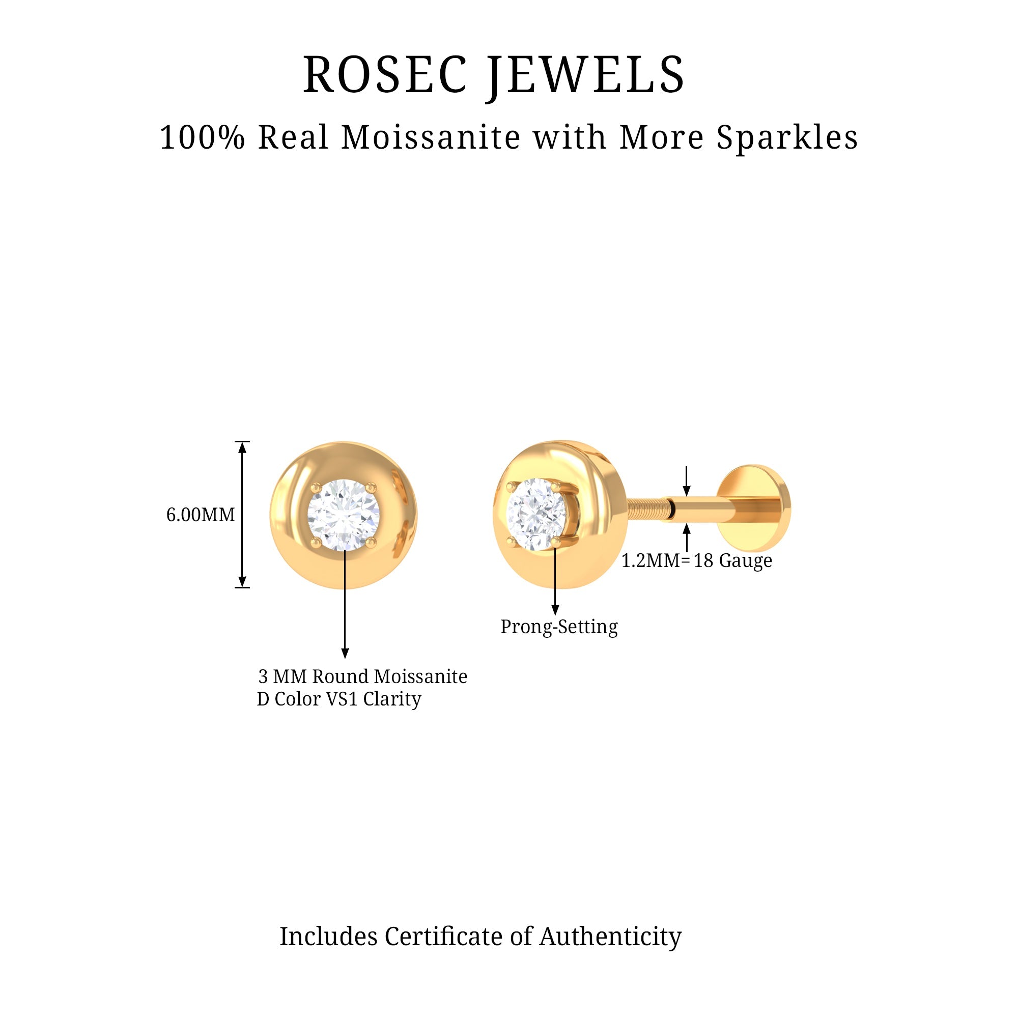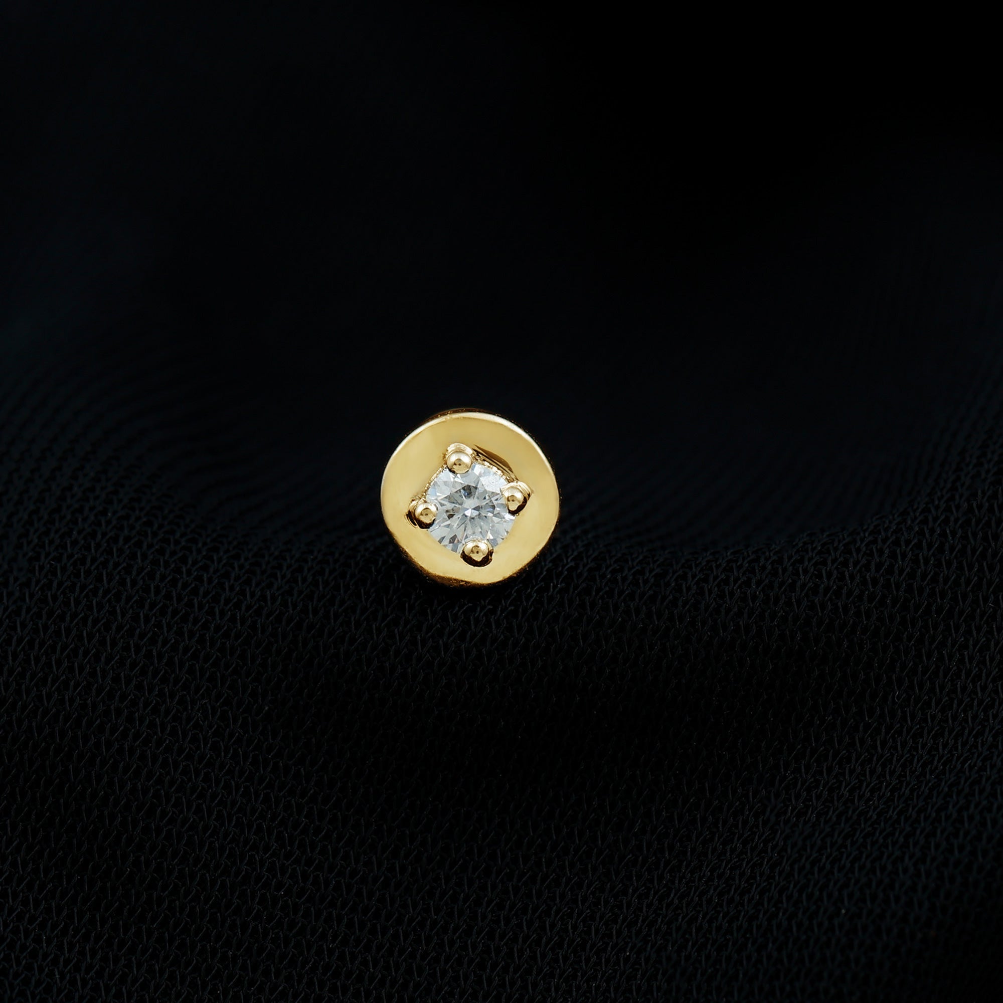 Moissanite Circle Solitaire Cartilage Earring in Gold ‐ D-VS1 / 14K Yellow Gold / Flat Back 4.5 MM