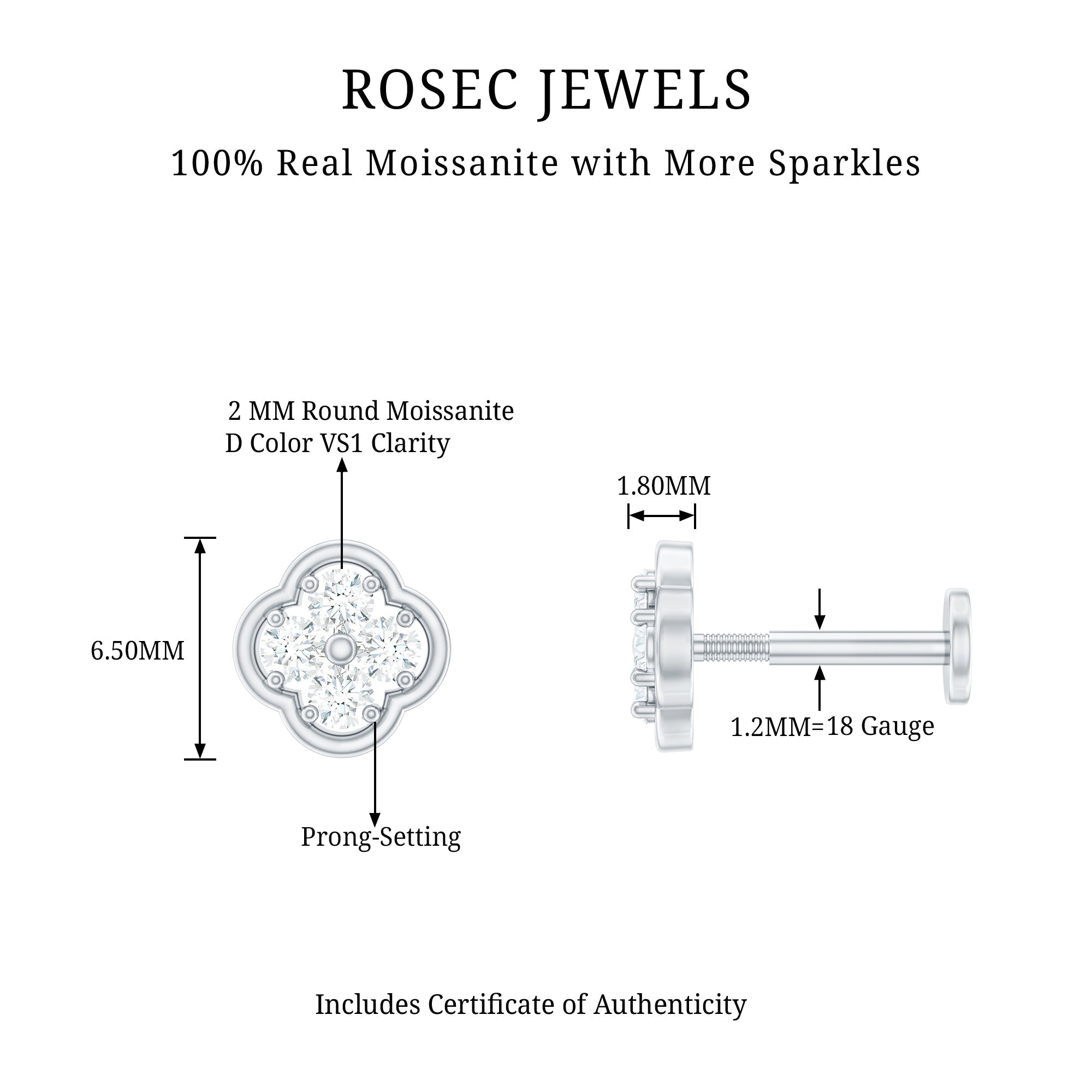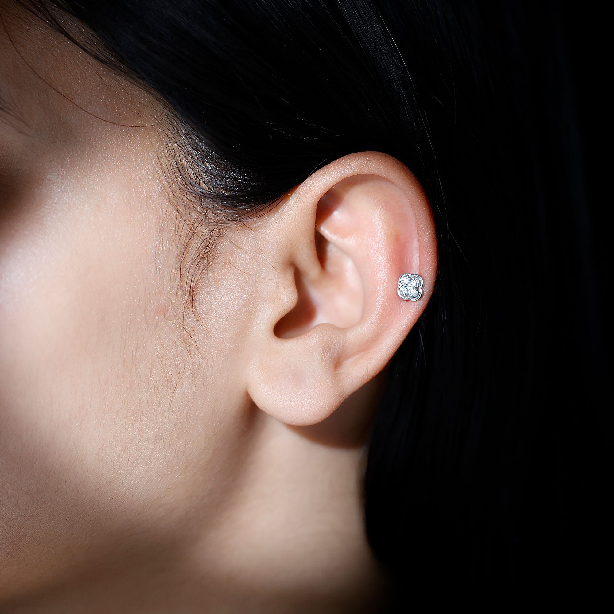 Moissanite Cluster Clover Earring for Helix Piercing ‐ D-VS1 / 10K White Gold / Flat Back 4.5 MM