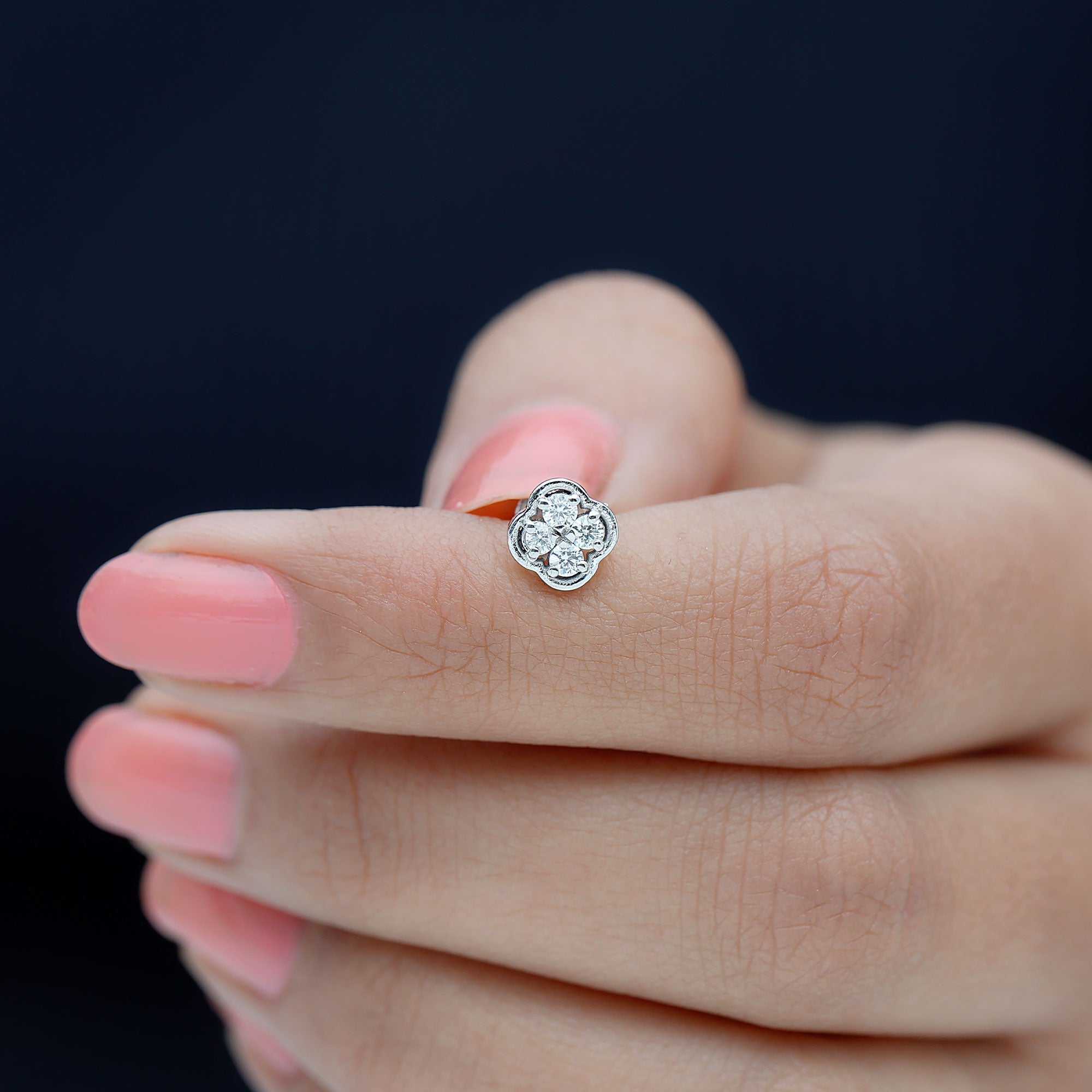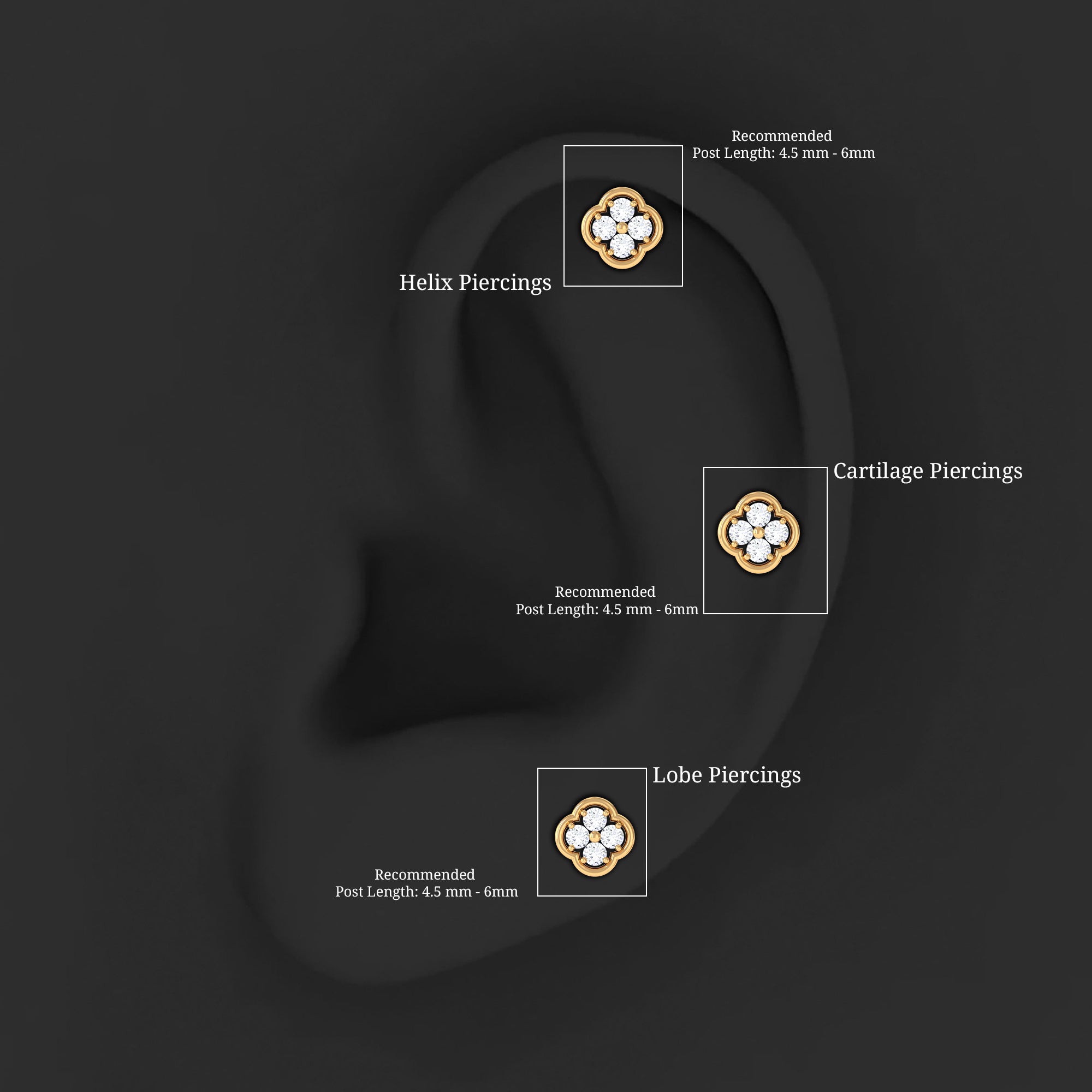 Adorned with four Round Cut Moissanites in Prong Setting on a clover design, this Clover Helix Earring is a stunning piece of jewelry that is sure to captivate everyones attention. Whether you wear it on your Helix, Cartilage, Conch, or Upper Lobe Piercing, this Cluster Earring will make a trendy addition to your collection. You can wear it alone or pair it with your favorite pieces to create unique looks. This Helix Earring features a Flat Back Closure to keep it securely in place.