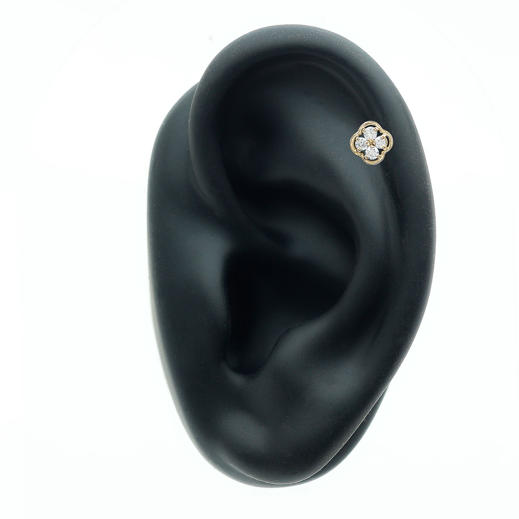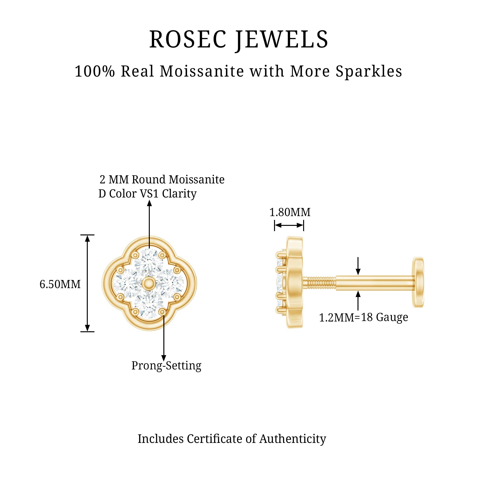 Moissanite Cluster Clover Earring for Helix Piercing ‐ D-VS1 / 14K Yellow Gold / Flat Back 4.5 MM
