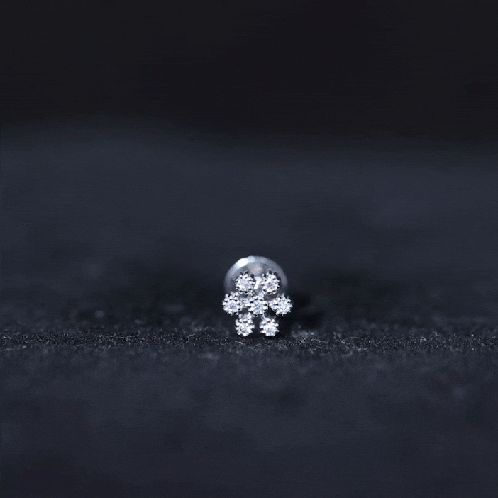 Moissanite Flower Cartilage Earring in Beaded Bezel Setting ‐ D-VS1 / 18K White Gold / Flat Back 7.5 MM