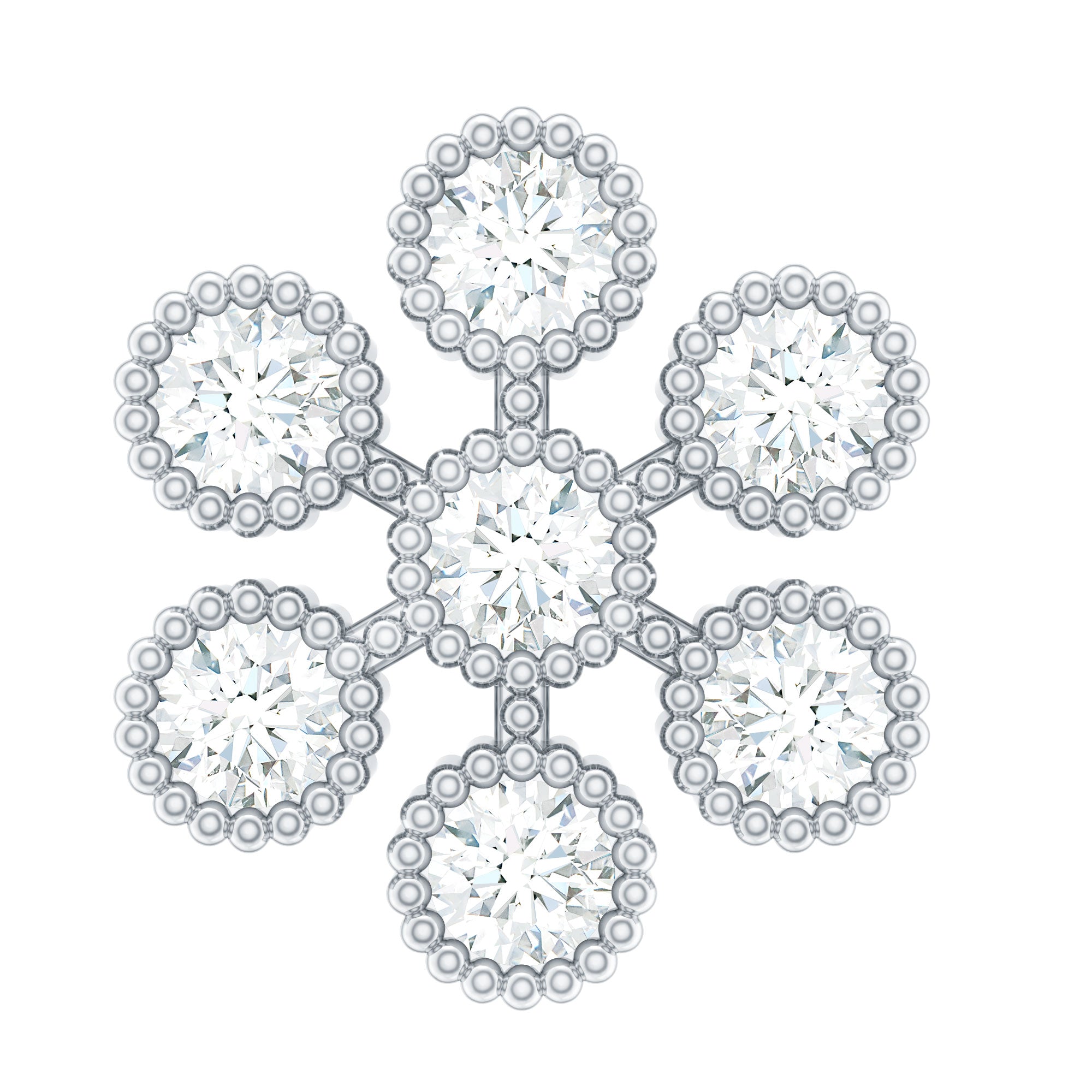 Moissanite Flower Cartilage Earring in Beaded Bezel Setting ‐ D-VS1 / 14K White Gold / Flat Back 6.0 MM