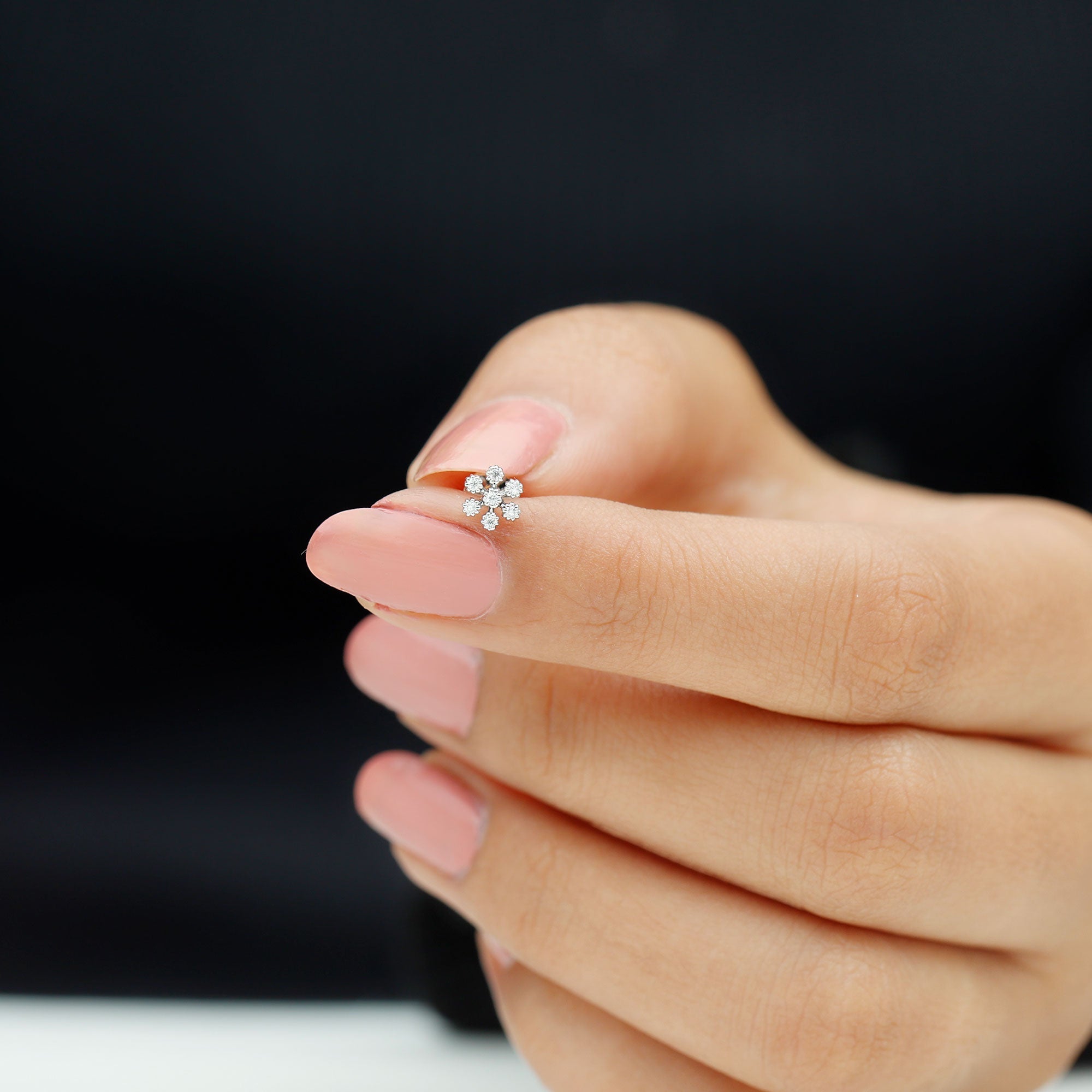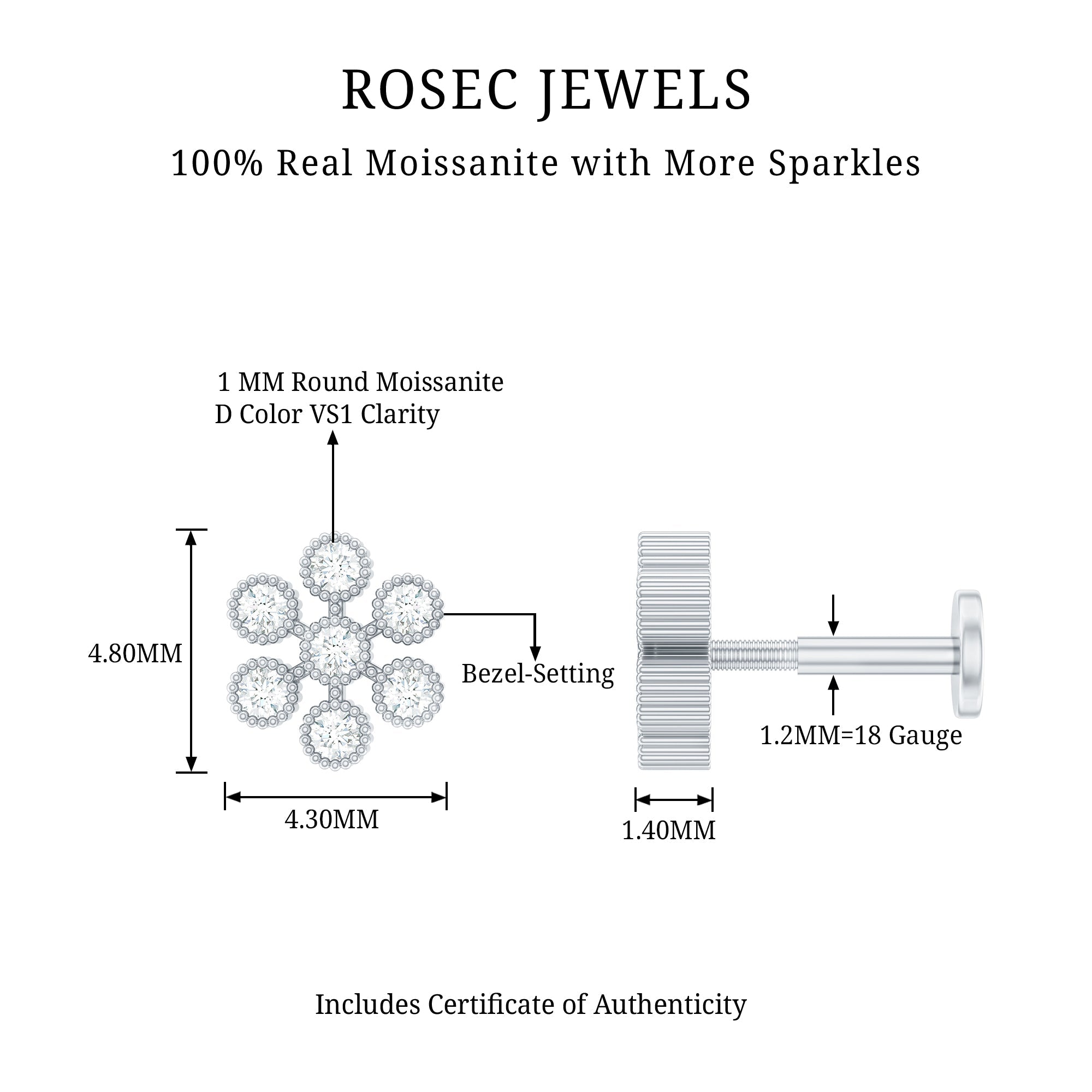 Moissanite Flower Cartilage Earring in Beaded Bezel Setting ‐ D-VS1 / 14K White Gold / Flat Back 6.5 MM