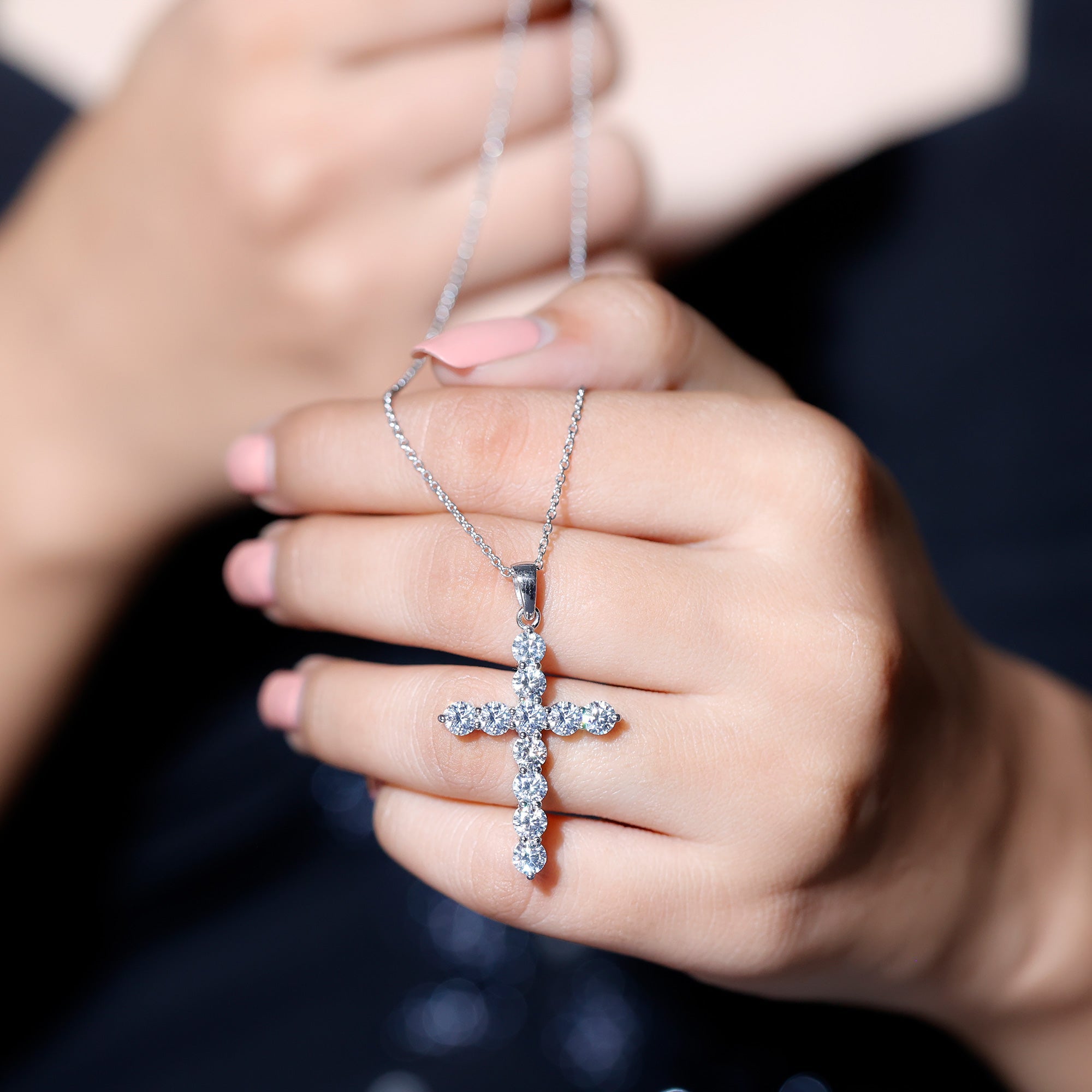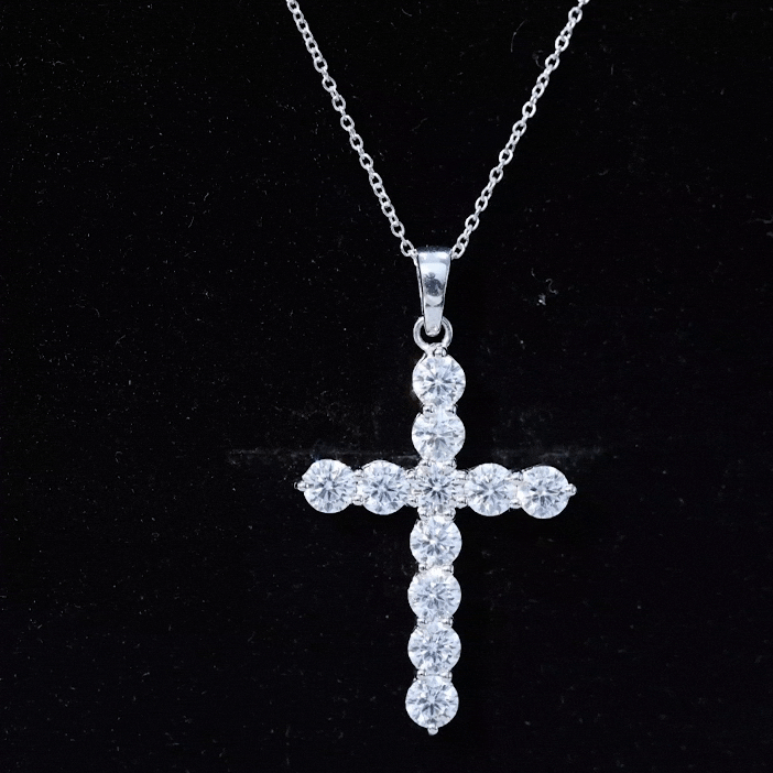 Moissanite Simple Cross Necklace With Silver Chain