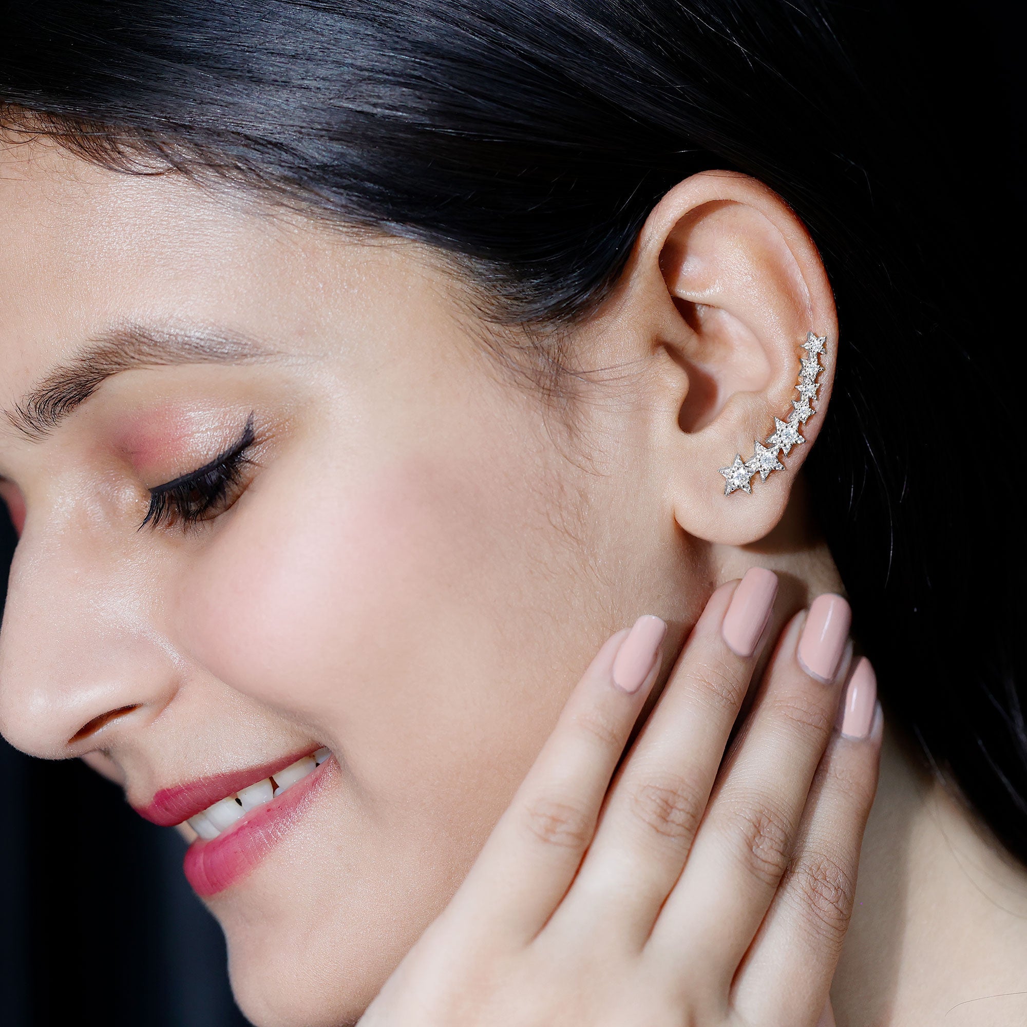 Moissanite Star Climber Earring for Cartilage Piercing