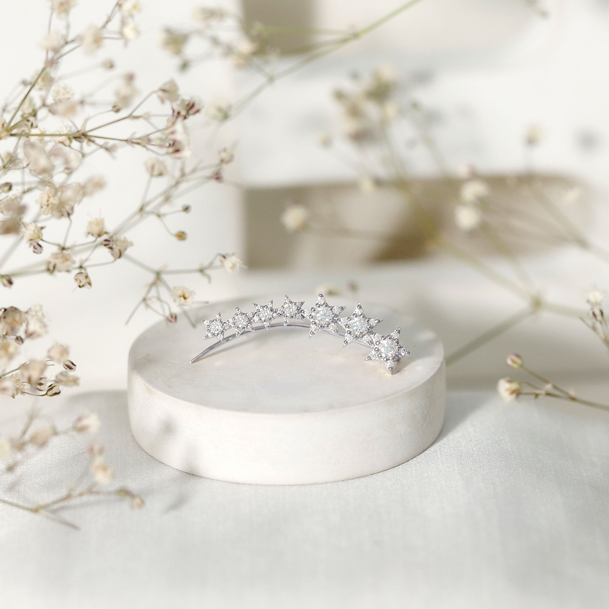 Moissanite Star Climber Earring for Cartilage Piercing ‐ D-VS1 / 18K White Gold